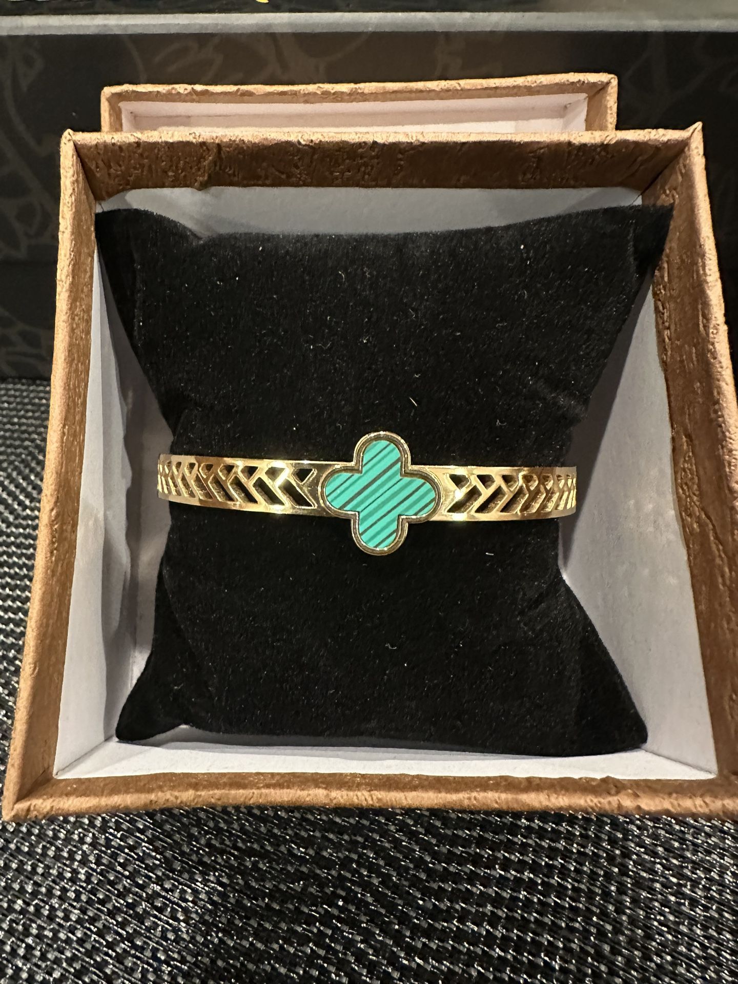 Brand New Gold Plated Green Clover Stainless steel Bangle Bracelet with gift Box Pickup in Covina $20