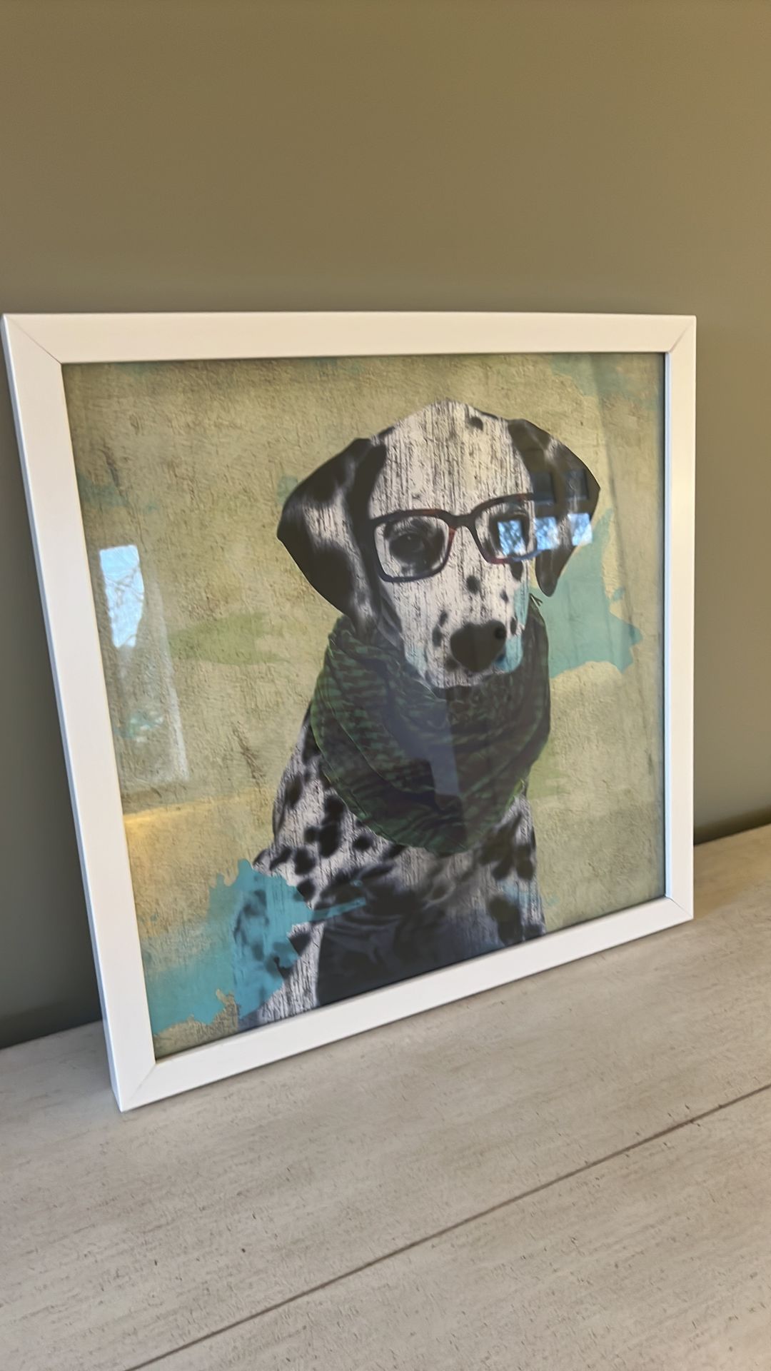 Nothing is more hip than this Dalmatian! Pops of blues and greens to give your room the finishing touch it needs. In perfect condition and looking for its new home. 20” x 20” White frame Easy to hang $10 Cash or Venmo You pick up from the Greenlake neighborhood in north Seattle.