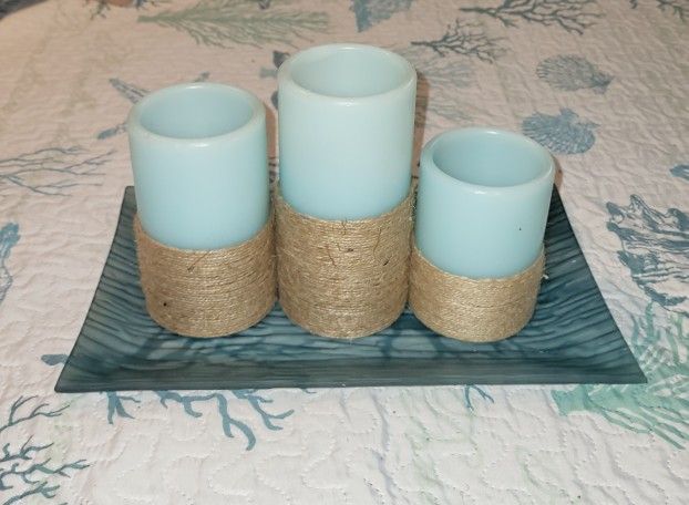 Battery Operated Candles With Glass Tray