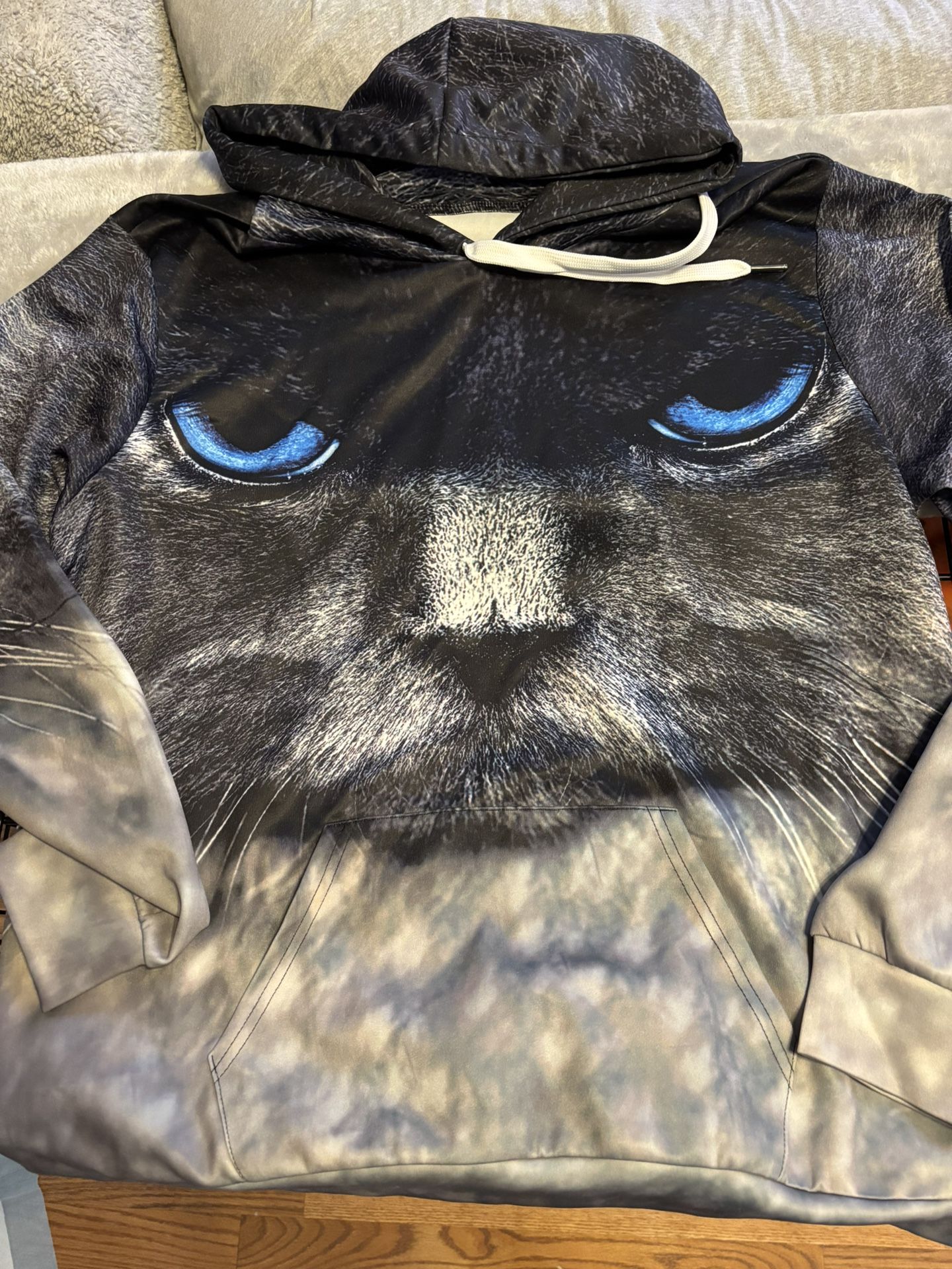 Cat long sleeve hooded shirt. Design on both sides. Medium Large