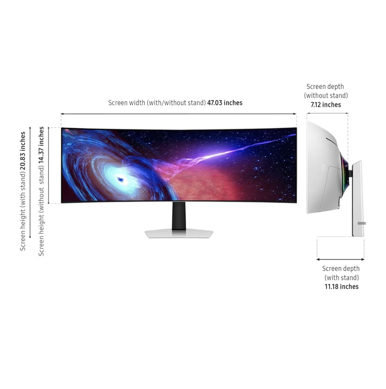 Samsung 49" Odyssey G93SC Series Curved Gaming Monitor, QD-OLED, 240Hz, 0.03ms, DQHD, G-Sync Compatible, FreeSync Premium Pro, Adjustable Stand