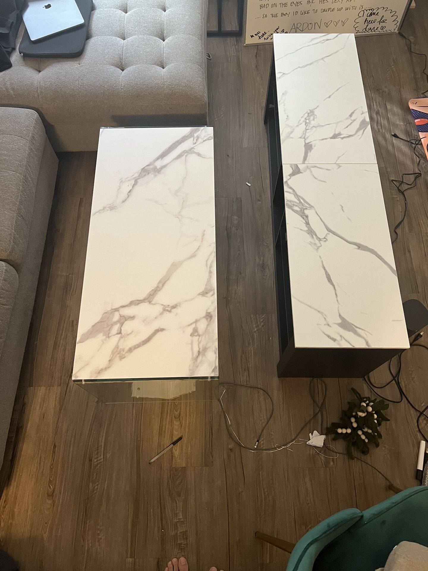 TV Stand Dimensions 55”(L)×13.8”(W)×18.5”(H) LED does not work Coffee is about 48inches long and 1 1/2 feet wide