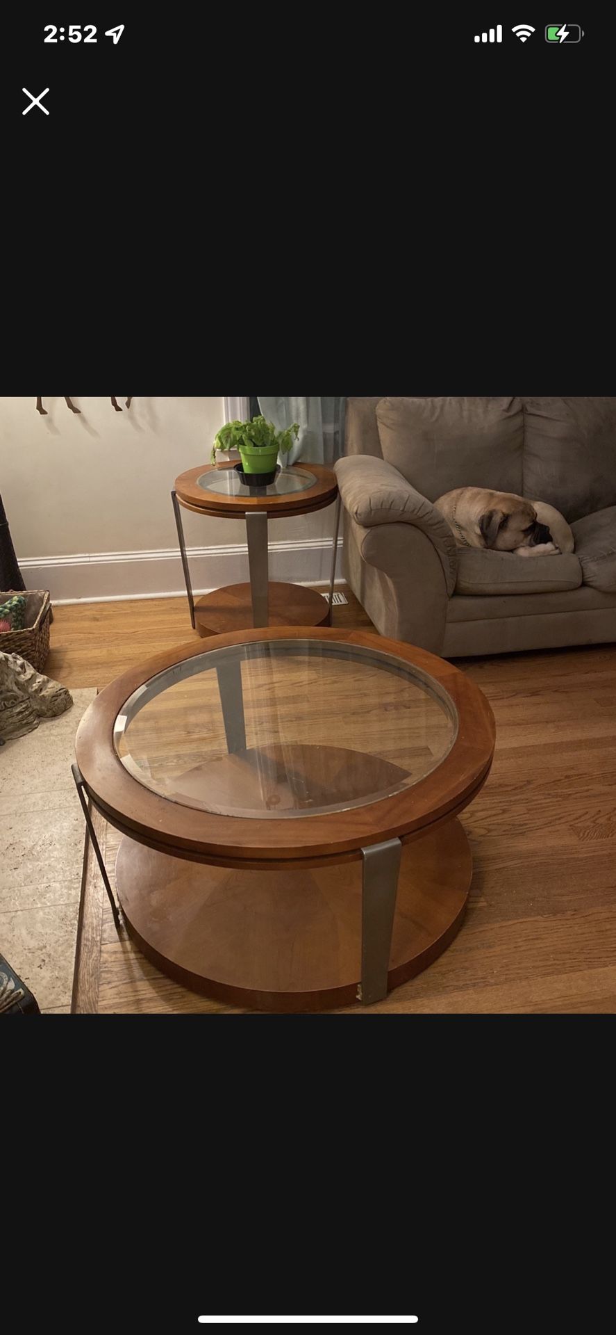 End table in good condition, coffee table needs slight repair