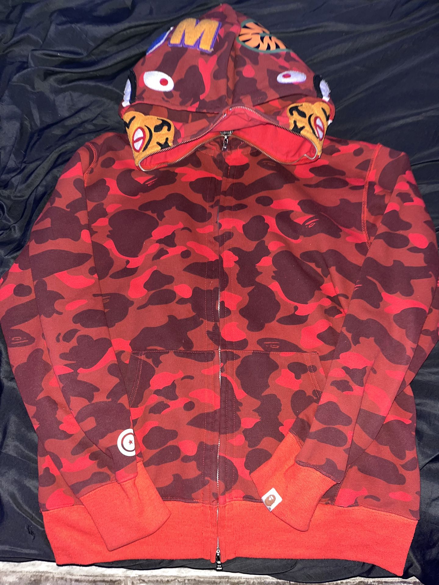 Red Double BAPE Hoodie Real Size Large