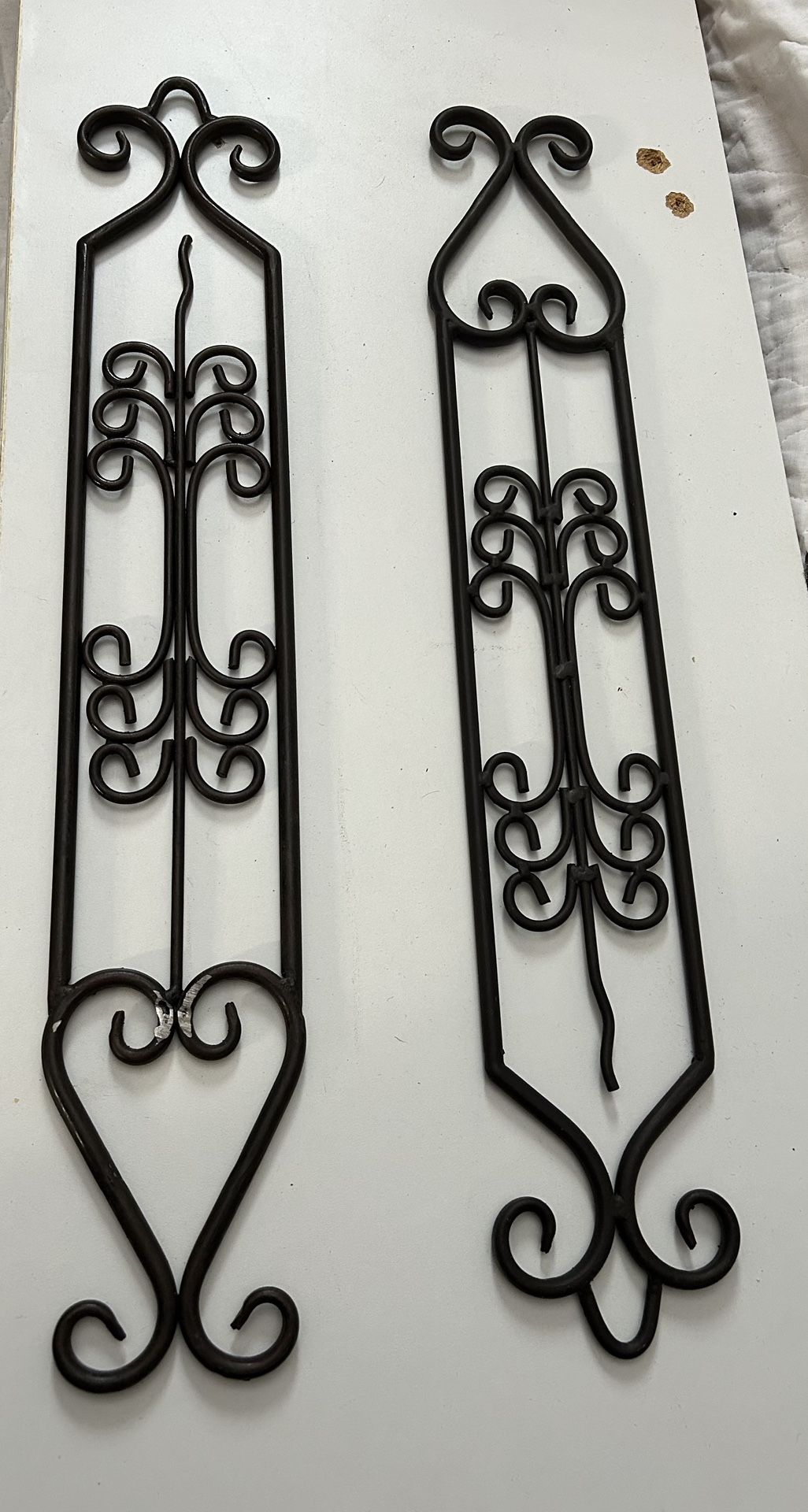 2 Decorative Black Metal Wall Art, 24” L x 4” W