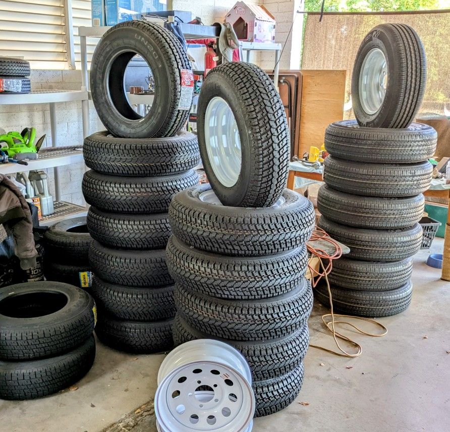 ** I have NEW ST205X75X14" Trailer Spare tires On New 14" White Wheels 5 on 4.5 lug, ONLY = $115.85 ** and I have ST205x75xR14 " 8 ply " Radials mounted on New 5 on 4.5 lug white wheels for just $140.85, **** or Just 8 ply Radials st205x75xR14 with no wheels for just = $77.85 ** New RADIAL st205x75xR15 Trailer Tires "8 ply" mounted on New15" Silver wheels 5 on 4.5 lug, just $141.85 ** New trailer tires st205x75xD15" on new 15" , 5 on 4.5 lug New silver wheels for only $117.85 **** or st205x75xR15 " 8 ply " for only = $77.85 *** or just the Radial Tires st225x75xR15, " 10 ply ", no wheel for only $87.85.00 ea ** I sell 14" Wheels / rims only $ OUT ! ** Or 15" rim / wheel with 5 on 4.5 lug pattern for just - $71.85 *** ALL the above Trailer Tires are NEW 2025, IN STOCK ! search Words :Y/ , stock rhino, quads, dirt bikes, golf carts, etc. Sport UTV / Off-Road /Side-by-side ,rail, dirt bikes, quad, many extras included , fenders , trailer fender's , Trailer Fenders for sale, and USED, trailer spare tire , extra wide trailer for sale camping, trailer for sale , golf cart trailer, ATV , UTV, dunes , camping , moving , dump run , motorcycle , bike trailers , equipment trailers, fabrication, flatbed Spare Tire