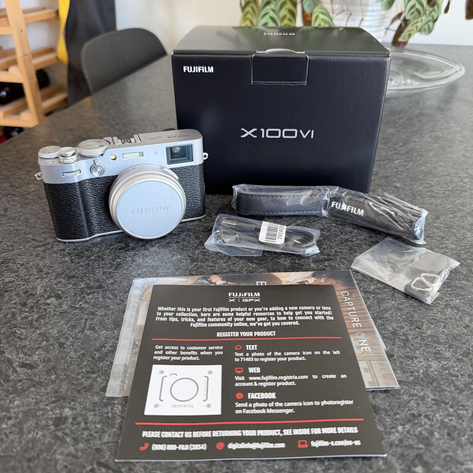 Fujifilm X100VI - Purchased October 2024 from Glazer's Camera in Seattle Washington. Original receipt included. It's in like new condition, and only used for one shoot. 800 shutter count, but the last image metadata I looked at showed a shutter count of 487. Comes with original box and all original accessories. Please message with any questions.