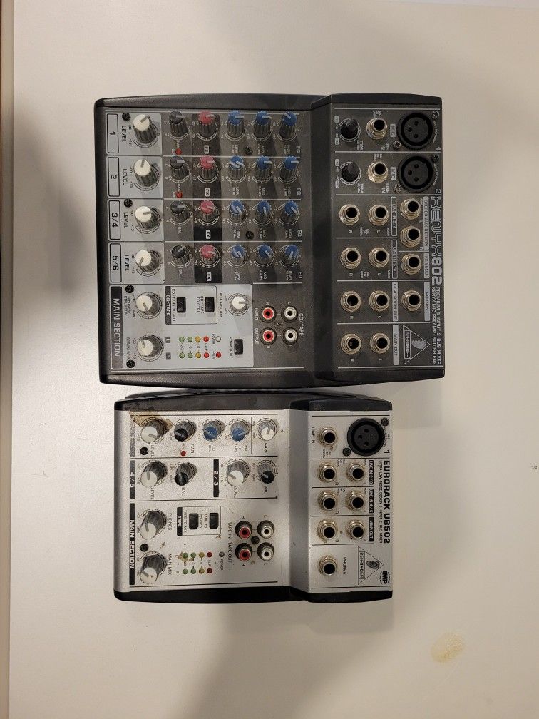 Two used Behinger mixers. I haven't used them in a few years, but they worked perfectly fine the last time I did. I have lost the power supplies for them. $20 for both together.