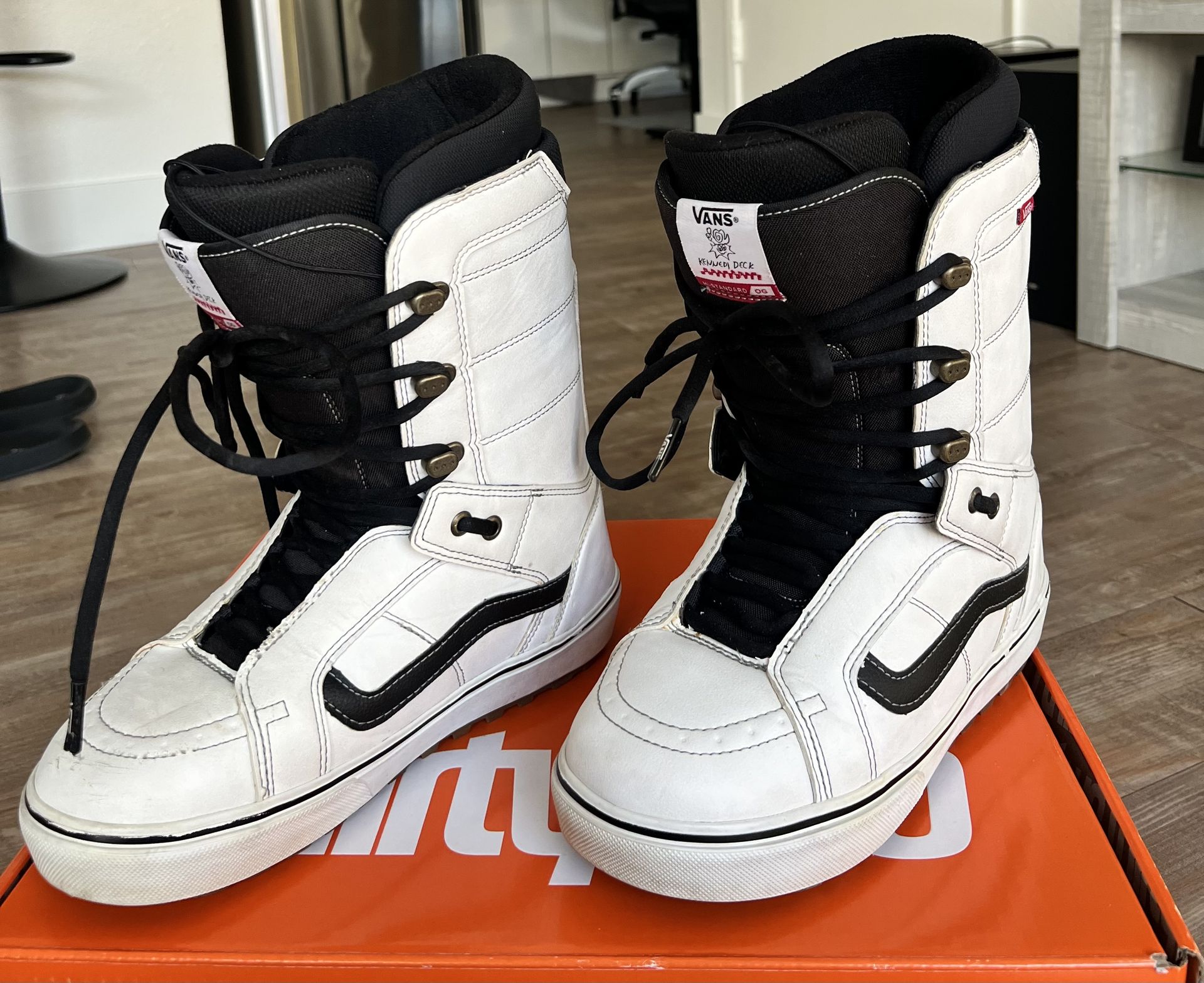 Mens Vans Hi-Standard OG Snowboard boots, size 10, white/black colorway, only used for 2 seasons, in great condition with traditional lacing.