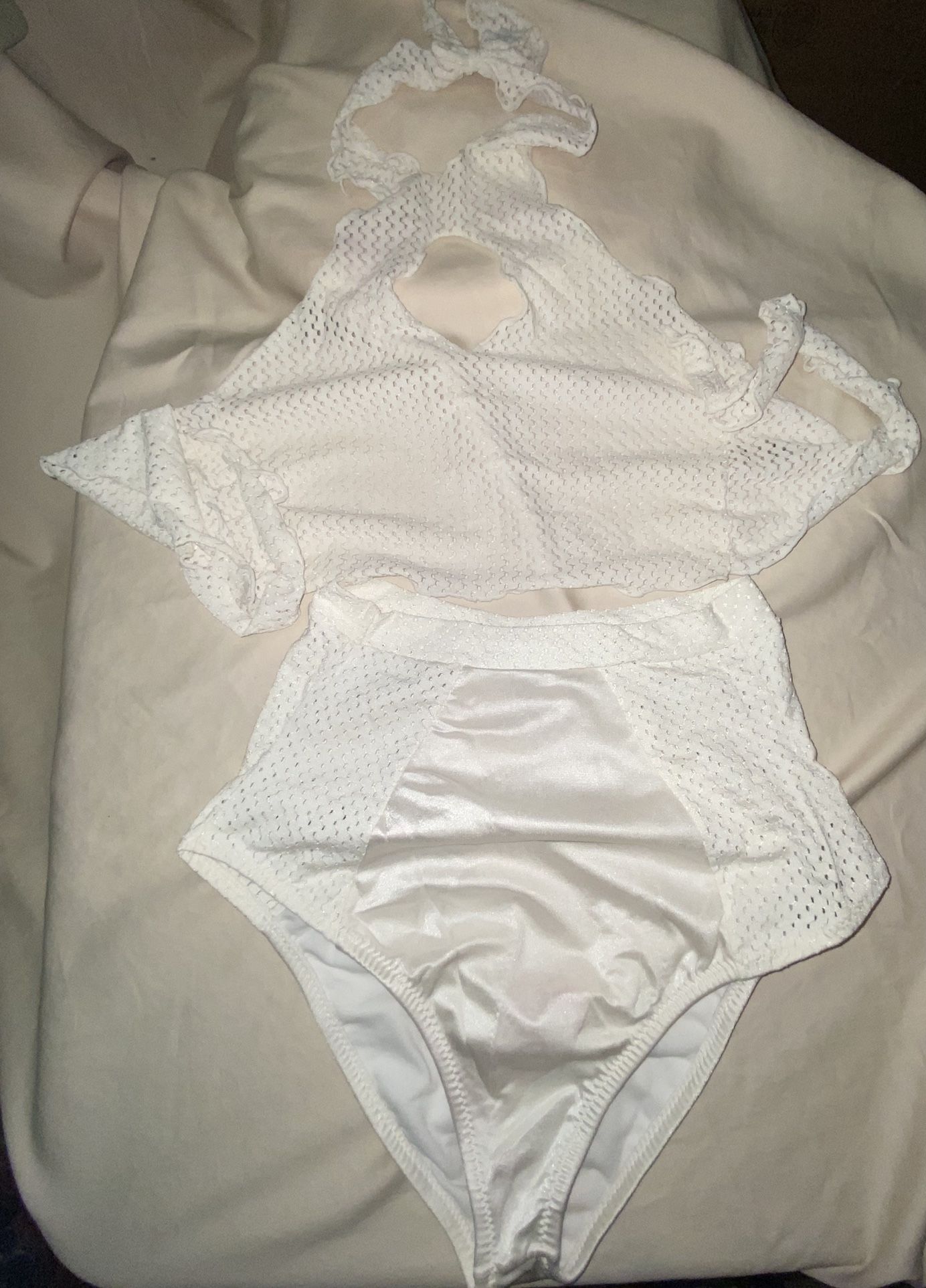 White high waist Bikini S/M stripper dancer wear Only worn once. Good condition no stains or rips. The top is see through so you will need pasties or layer