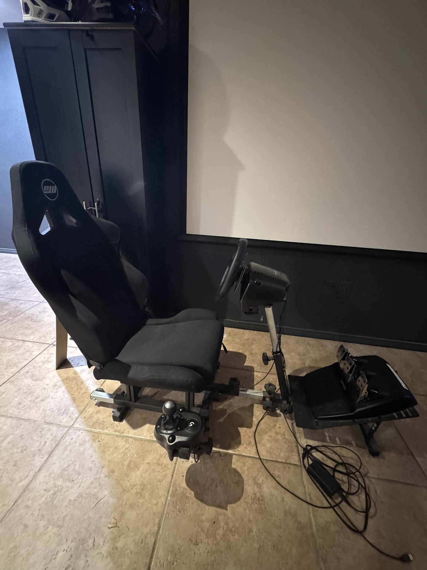 Selling my steering wheel setup & stand. Wheel/pedals/shifter is all Logitech G29 and the seat stand brand is Open Wheeler Gen 3. Wheel setup is compatible with xbox one/ps4/ps5/pc. Seat can be reclined and slide forward/back. Wheel and pedals can be extended out farther as well if you’re tall. Everything works perfectly. Don’t use the setup anymore so want to get rid of it. $400 obo