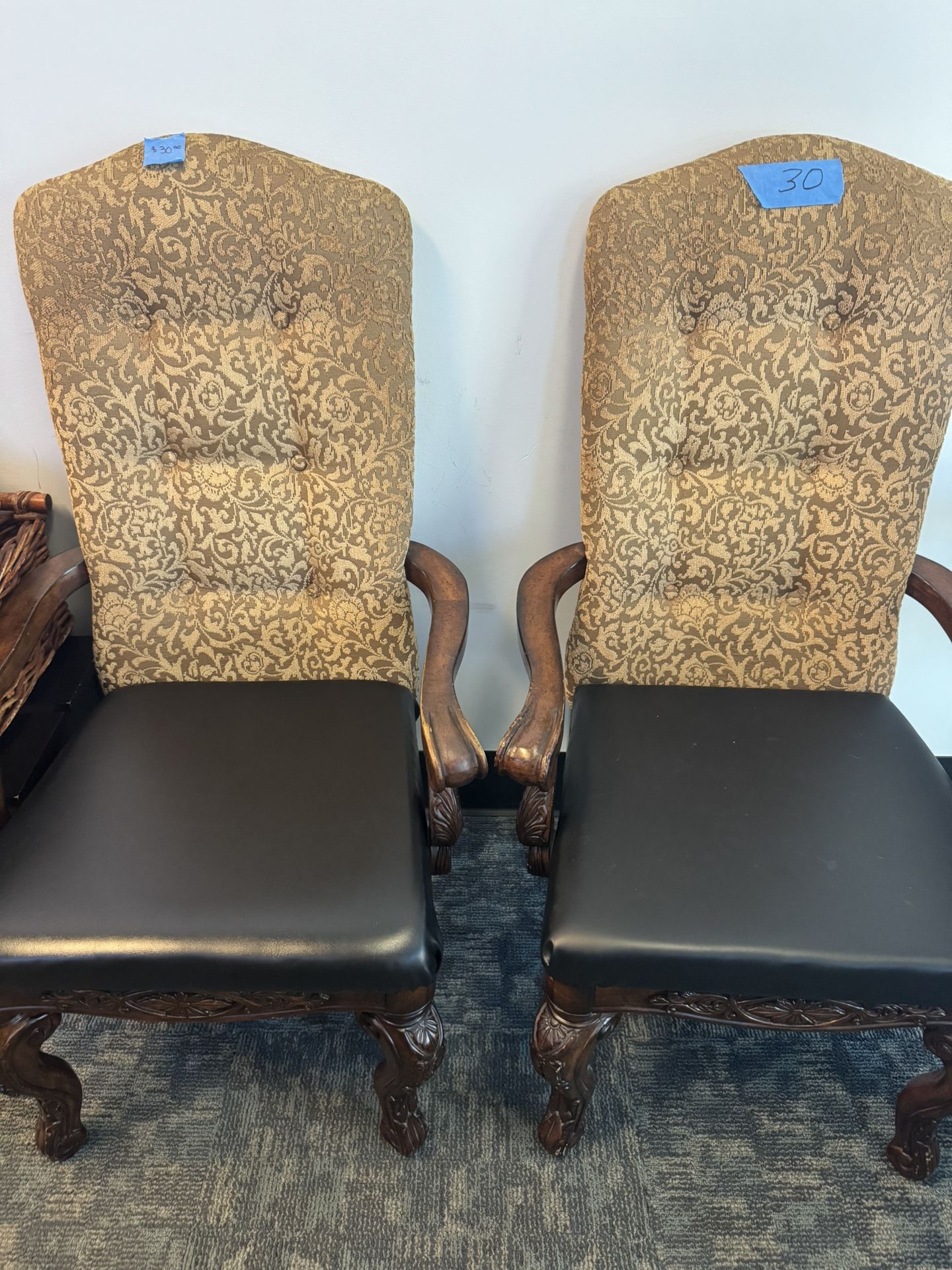 Three Levitts dining chairs. $10 each or $25 for all three. Newly upholstered seats. Liquidation of PT and fitness office. Cash and pickup only.