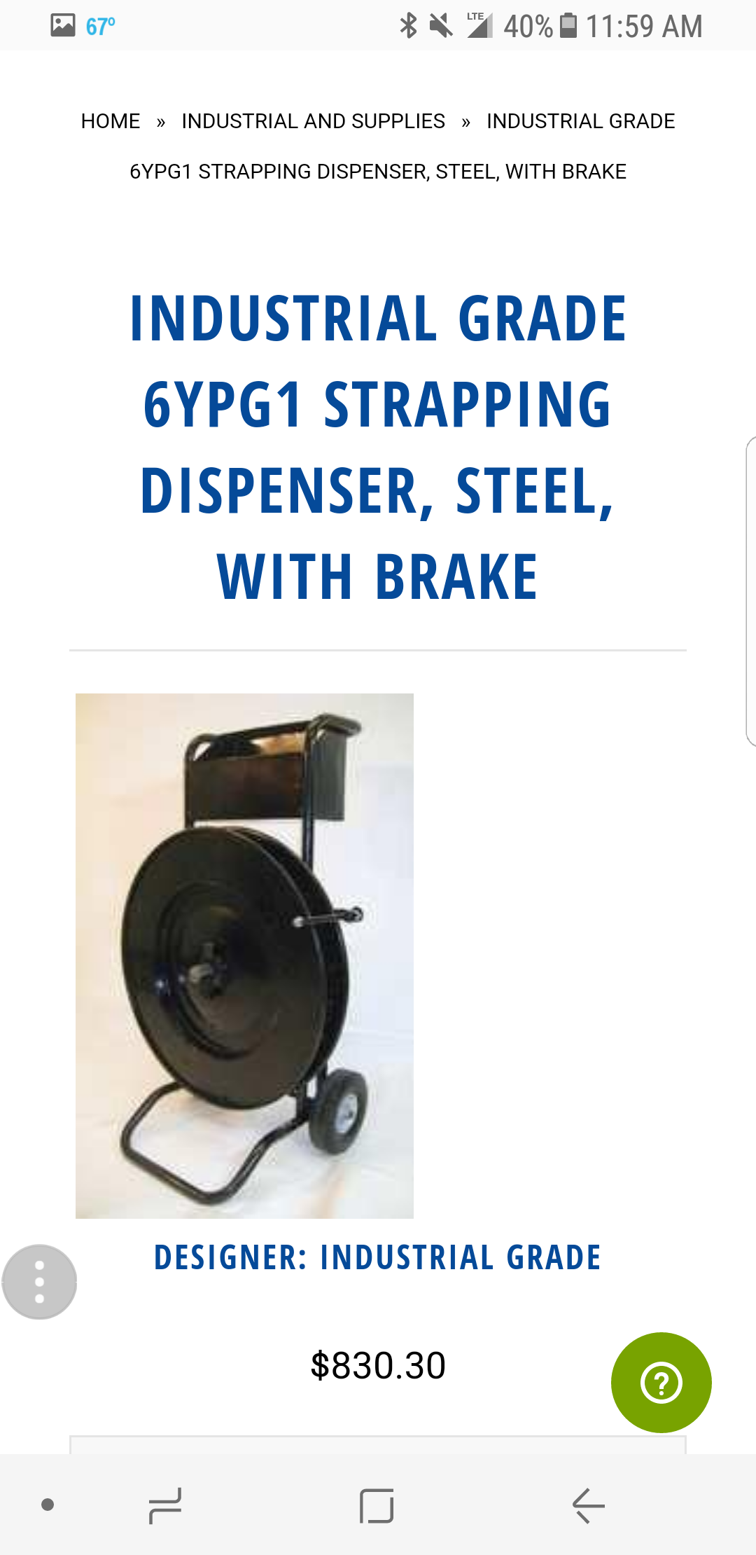 INDUSTRIAL GRADE Steel straping dispenser w/brakes