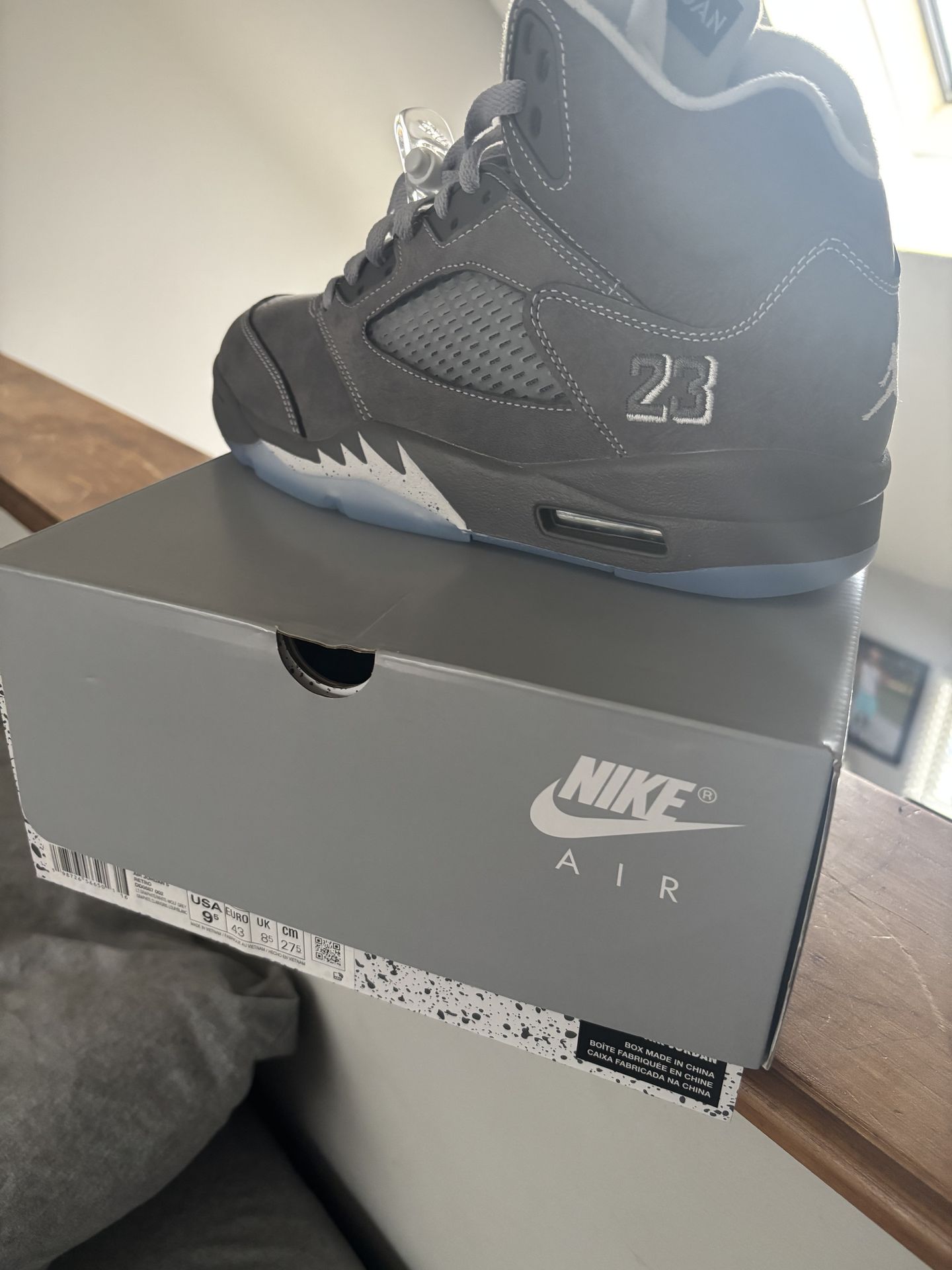 Wolf grey 5’s size 9 1/2. Looking for trade size 10