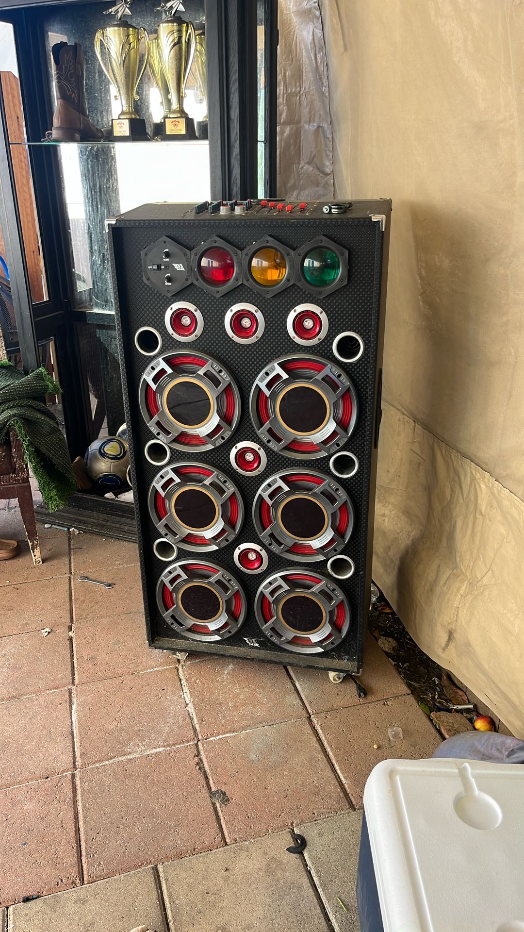 perfect condition , really loud, has led lights when you plug it in, bluetooth