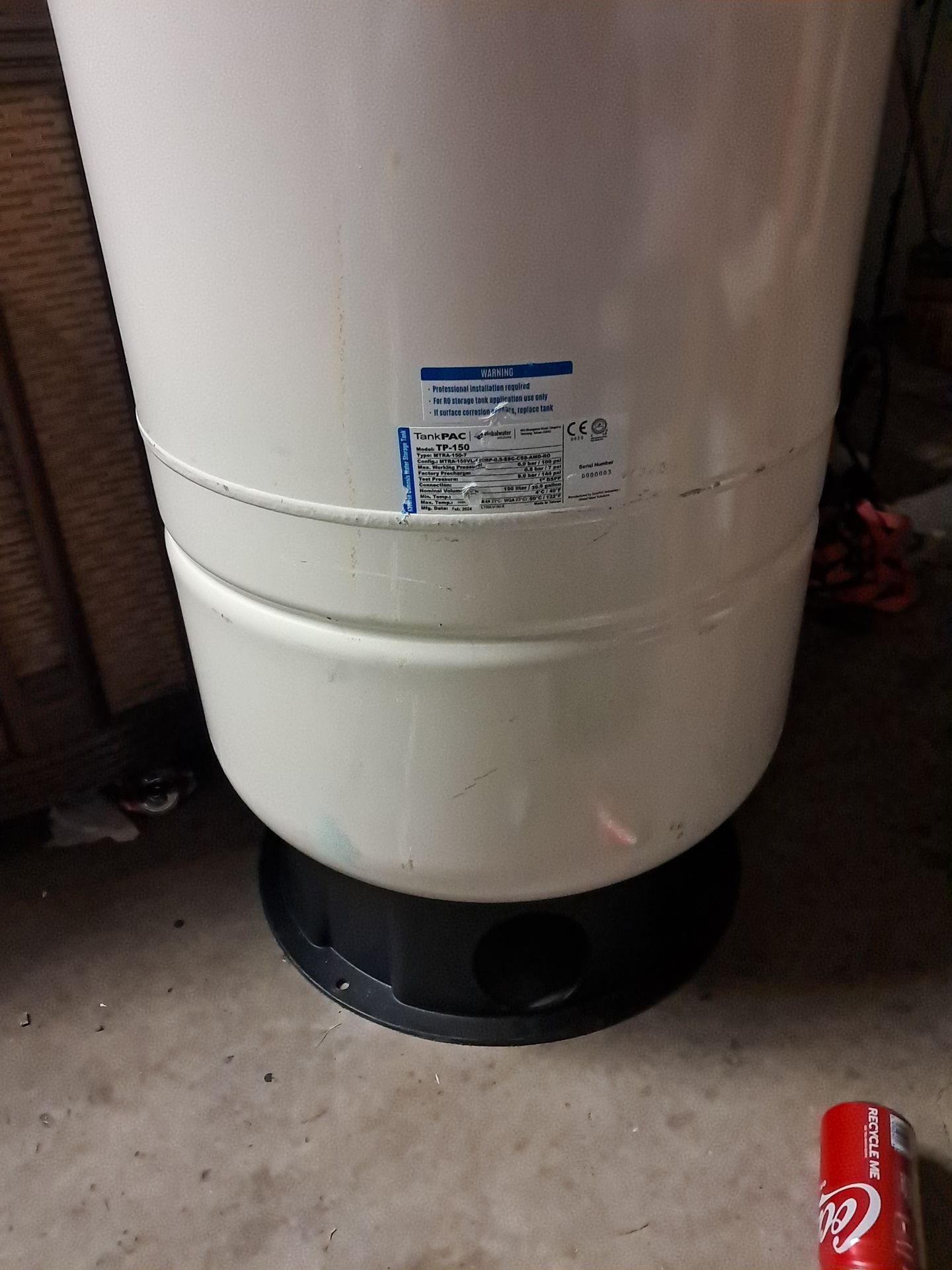 40 gal RO water tank pressurized