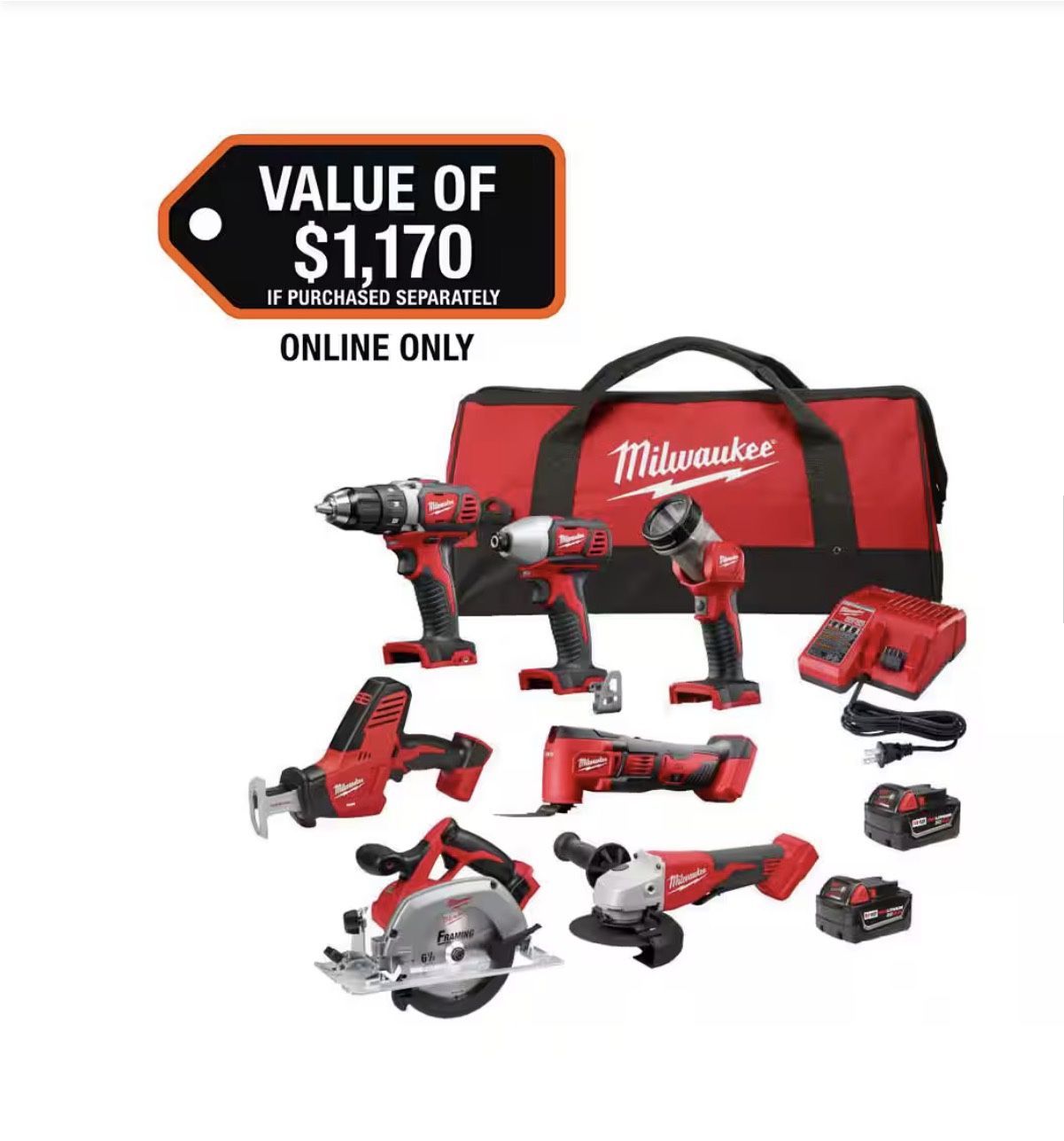 M18 18-Volt Lithium-Ion Cordless Combo Kit 7-Tool with 2-Batteries, Charger and Tool Bag