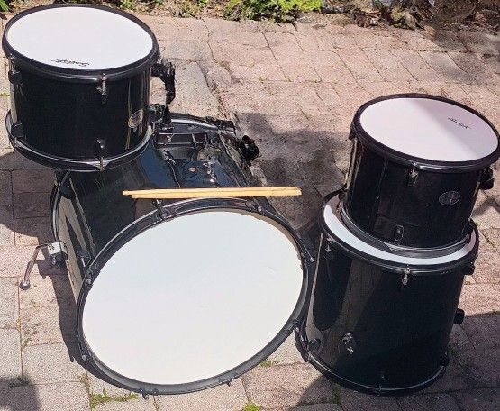 Rise by Sawtooth drum set! Missing parts: snare drum and snare stand, throne, cymbal stands, one of the mounts for a mount tom, and a bass drum pedal. Drums are like new, barely used at all. Stock heads still on. Cymbals (stock) are pretty used, but still make a decent sound for beginners looking to learn or practice. I would recommend buying new heads for a beautiful sound, as I am a firm believer that any drum can sound great with the right heads. Also buy a drum key to adjust a lot of the equipment, such as tuning all of the drums. Once done with that, you've got a mighty fine kit. Just need the listed missing components. Measurements in inches: 13x8, 14x10, 16x16, 22x16. $250°° or best offer! Pickup at my location, or arrange meetup nearby. $10.00 more and we will deliver near homestead.