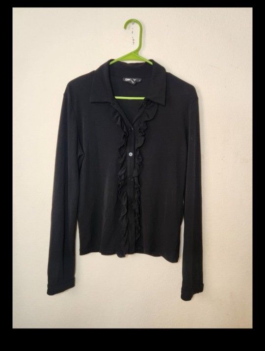 Rare Vintage 90's Black DKNY Women's Blouse/Button Up. Size Large