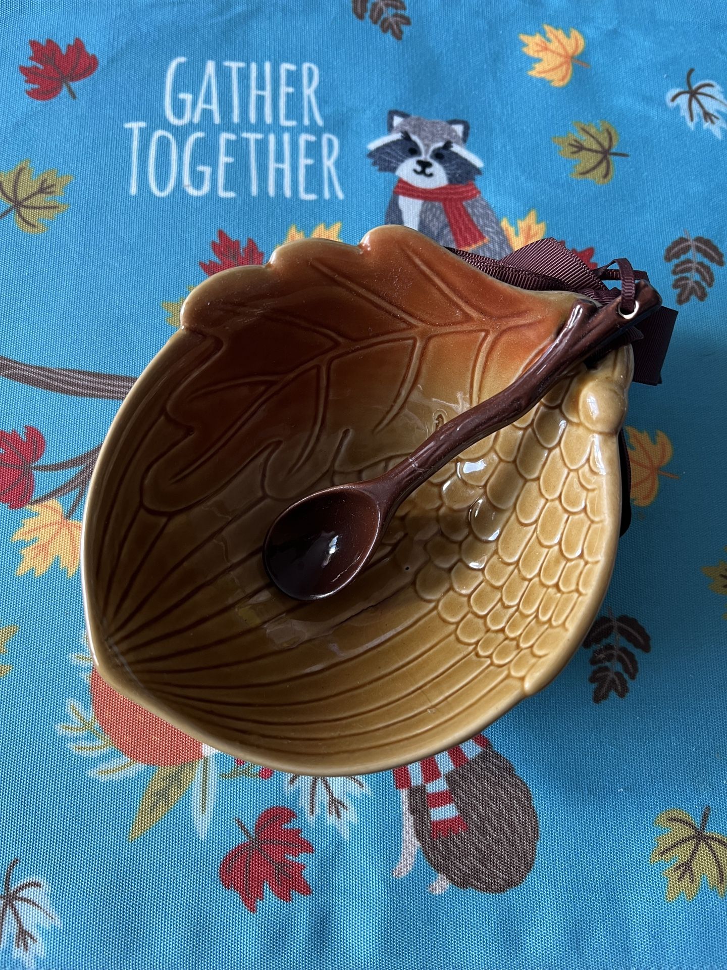 Hallmark Acorn Autumn Fall Appetizer Mezze Mint Table Bowl Candy DishWith Spoon Spoon has crack in it but it’s fairly unnoticeable and doesn’t affect function. Cash at pickup in reseda
