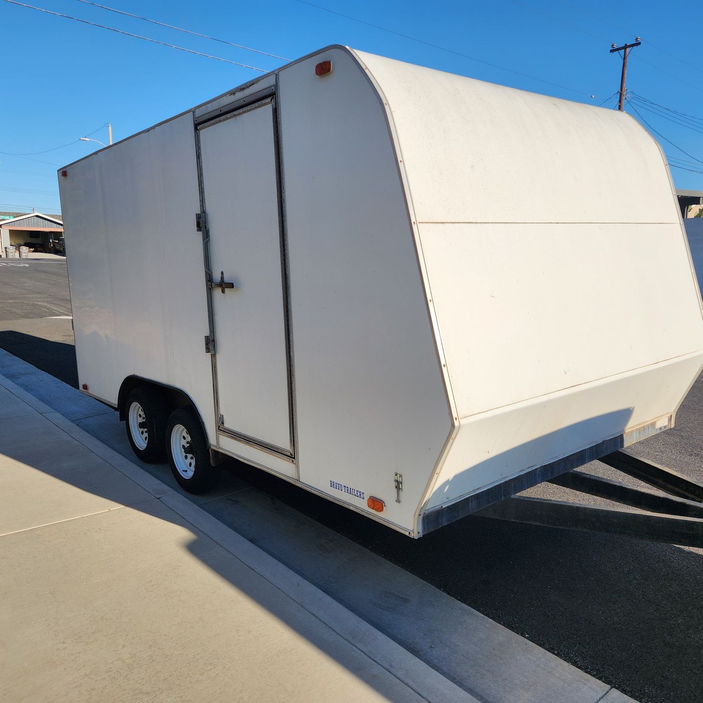 The box is about 16ft long and max width Electric Brakes and spare included Ca permanent plates with title Tows well Good tires Good lights Good bearings Ramp opens and closes easily Side door with heavy duty lock $5300