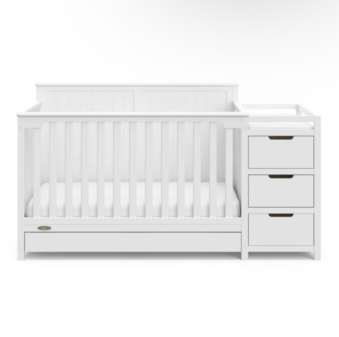 This crib is amazing for first time parents. It has a changing table. Drawers for clothes and it turns into a toddler bed as well. Still in very good condition. Easy to build. Great option. Selling it for the fraction of the price as well! Good deal don't miss out!!!