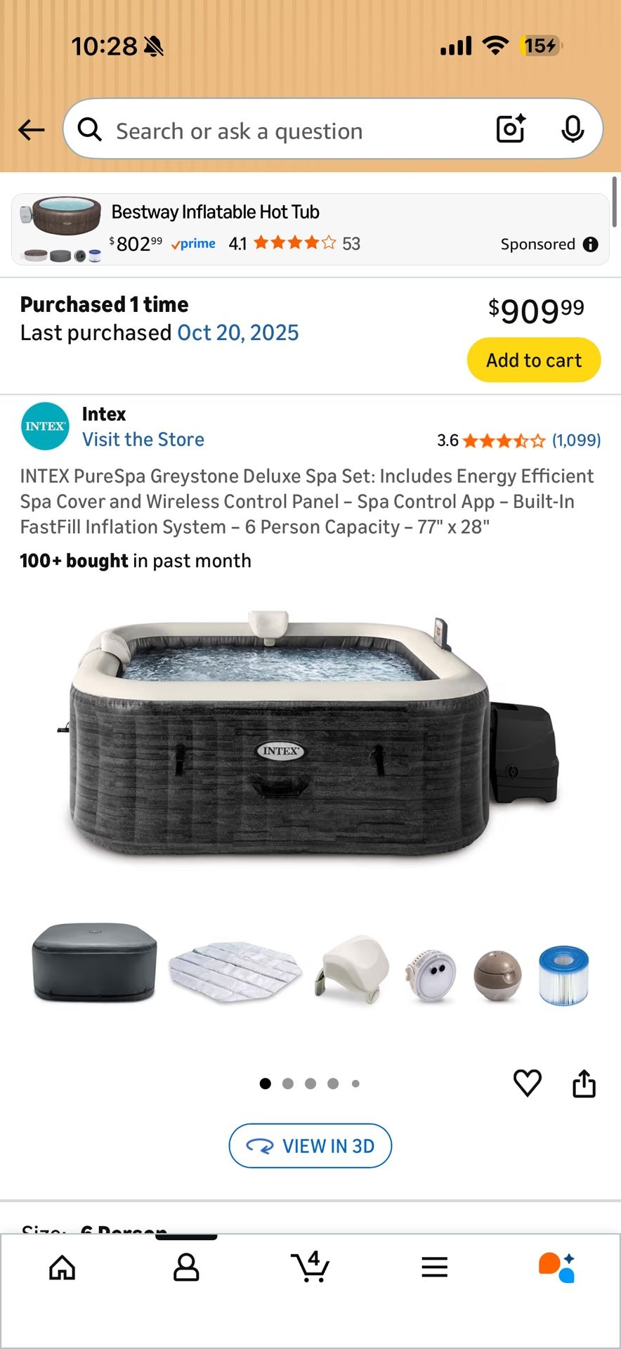 INTEX PureSpa Greystone Deluxe Spa Set: Includes Energy Efficient Spa Cover and Wireless Control Panel – Spa Control App – Built-In FastFill Inflation System – 6 Person Capacity – 77" x 28" 100+ bought in past month Paid over $1K, will take $600 OBO