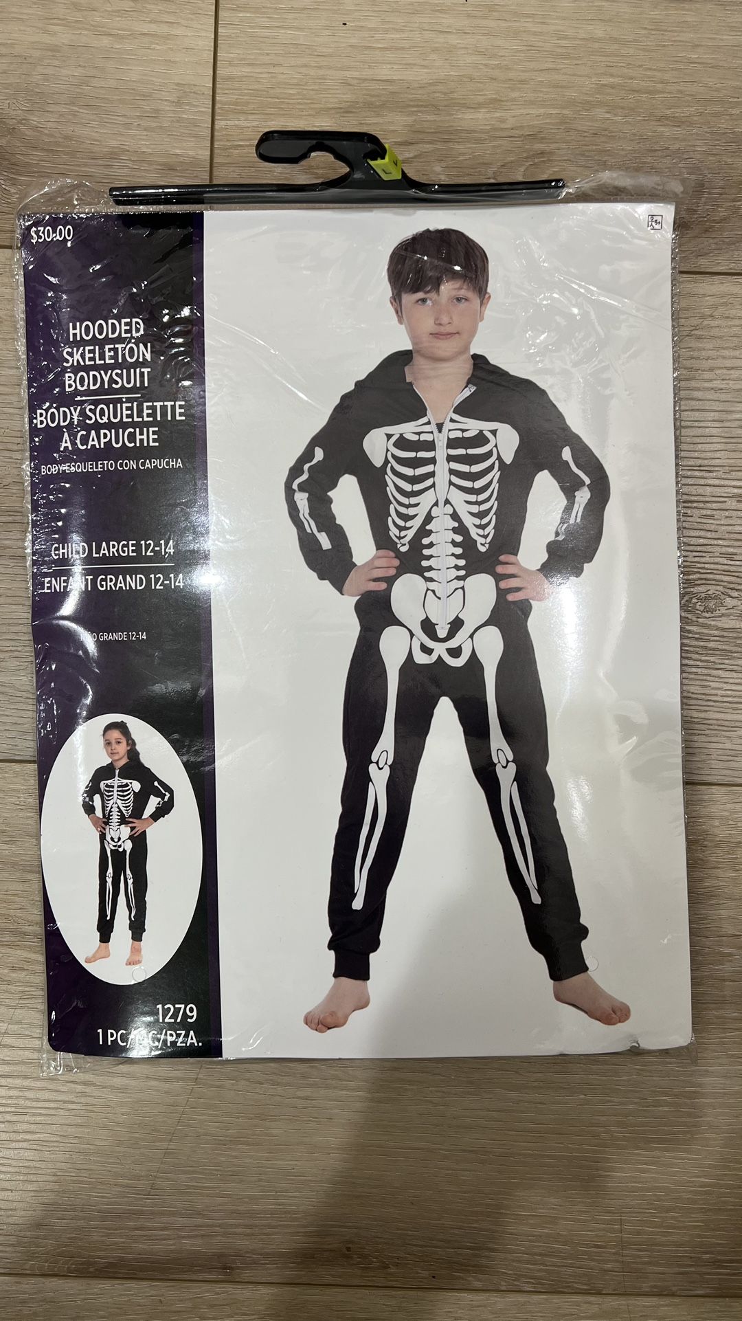 Hooded Skeleton Bodysuit Child Large - 12-14 **NEW** Unisex