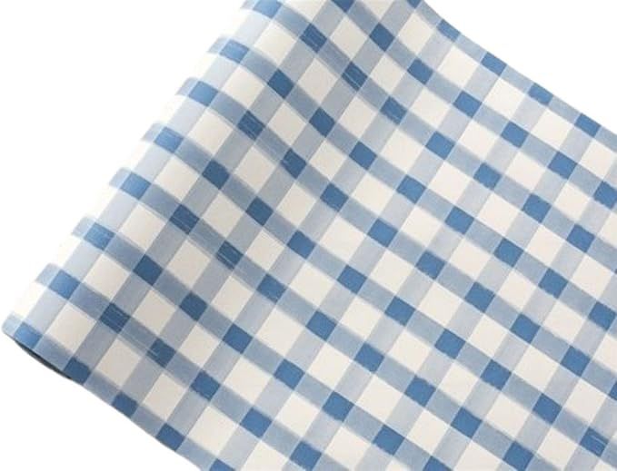 Hester & Cook Paper Table Runner Roll - Blue White Buffalo Check Plaid Pattern