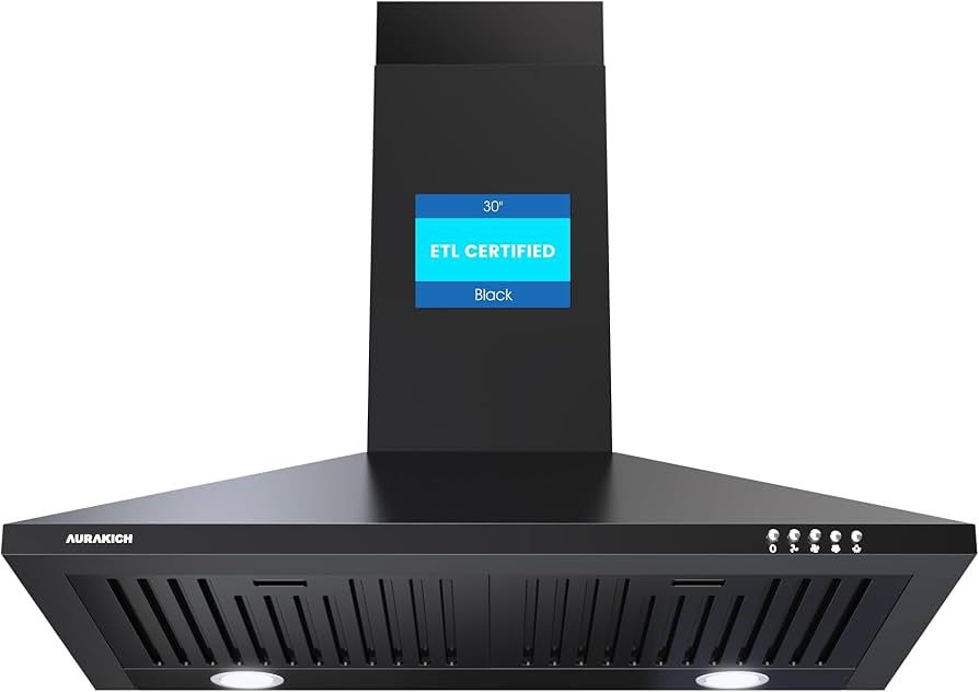 Black Range Hood 30 inch | 450CFM Wall Mount Kitchen Hood | TRUE-COLOR 5500K LEDs, Steel Baffle Filters, Ducted/Ductless Convertible (Charcoal Included) Brand new and in the box