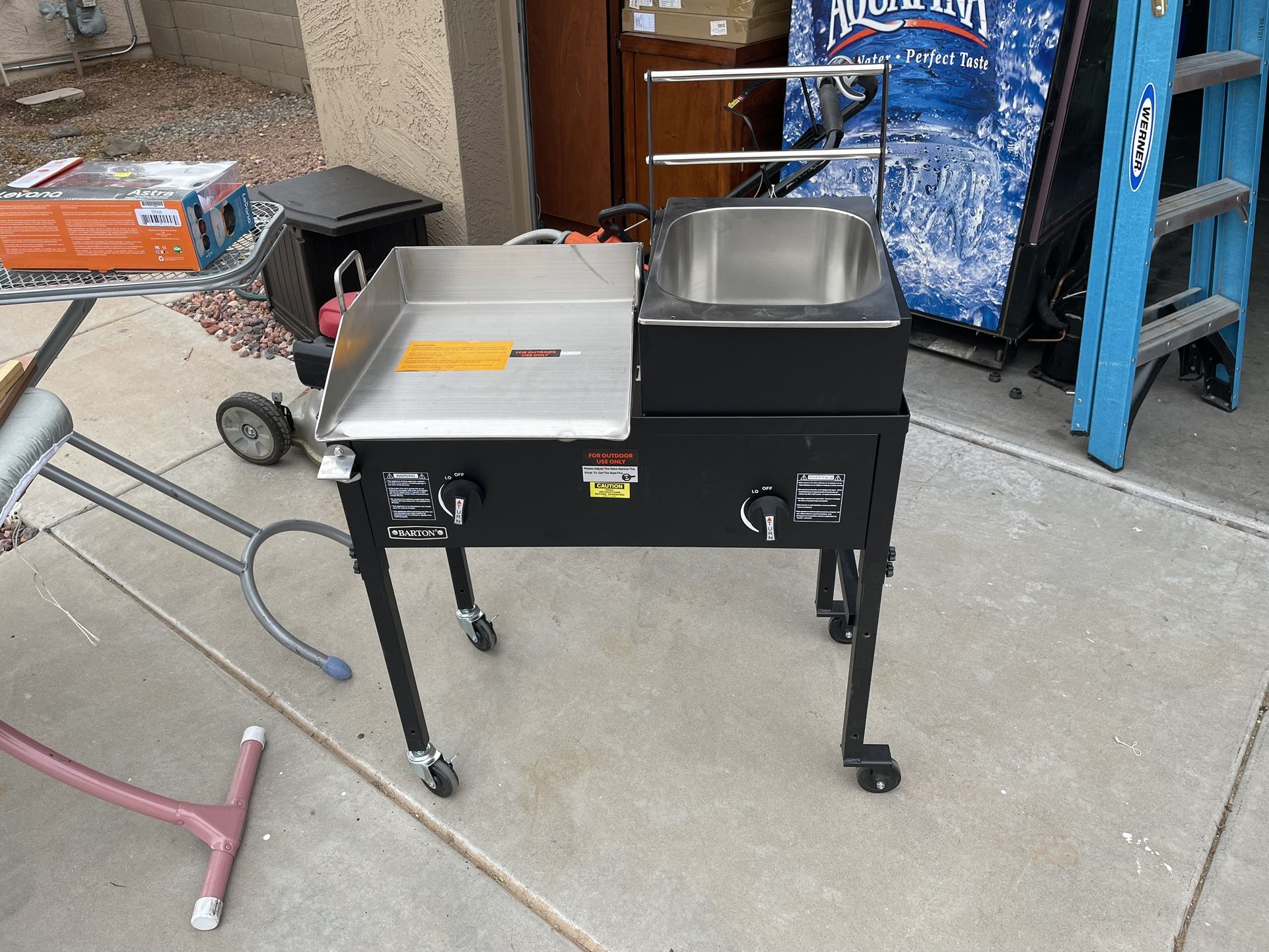 Barton griddle and fryer New No propane tank Just need to grab a propane hose from Lowe’s