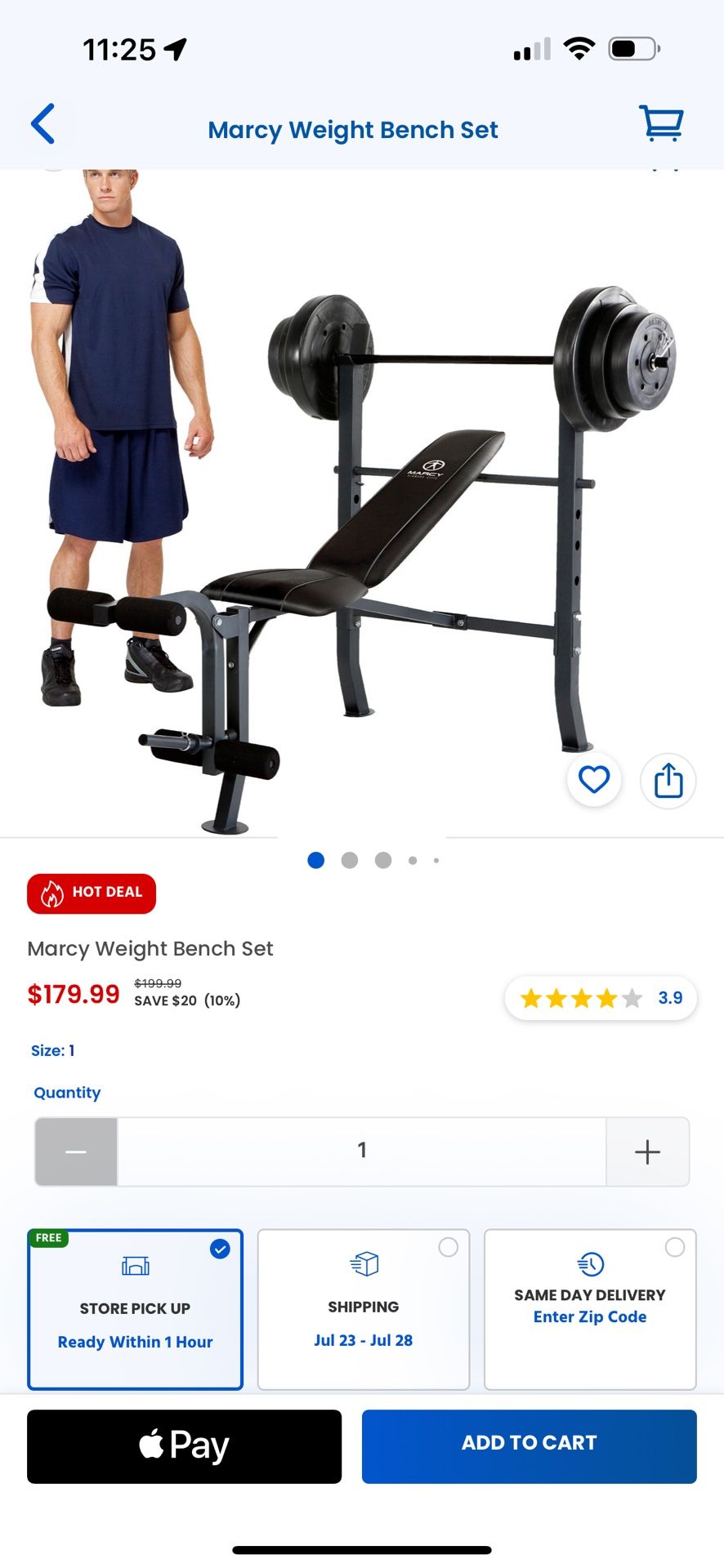 New (used it only couple of times) bench with 100lb weights Good for leg extenstion Deadlifts Bench press Overhead press Squats