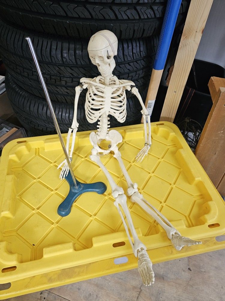 Tip of stand is broken and needs to be repaired in order to put skeleton on the stand. Skeleton 32" tall $50 FIRM