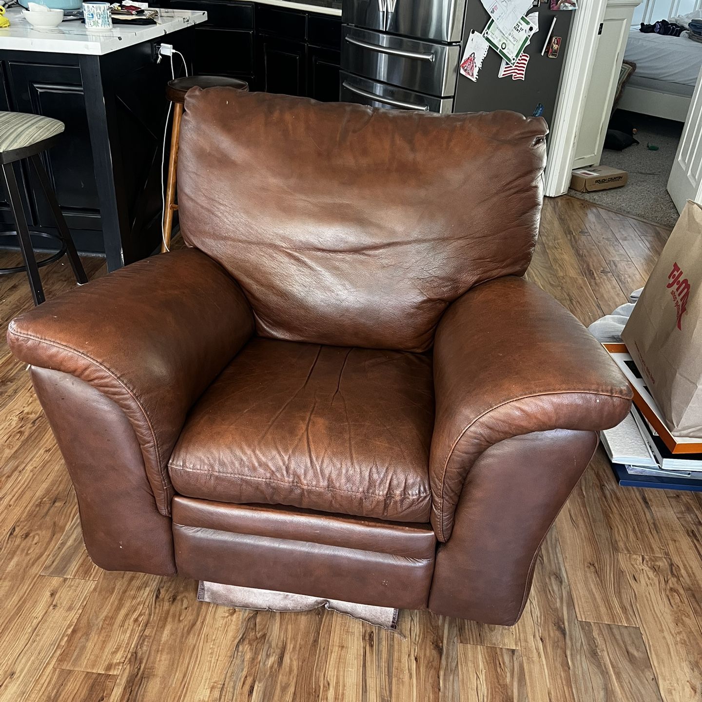Leather rocking armchair recliner with minimal scuffs.
