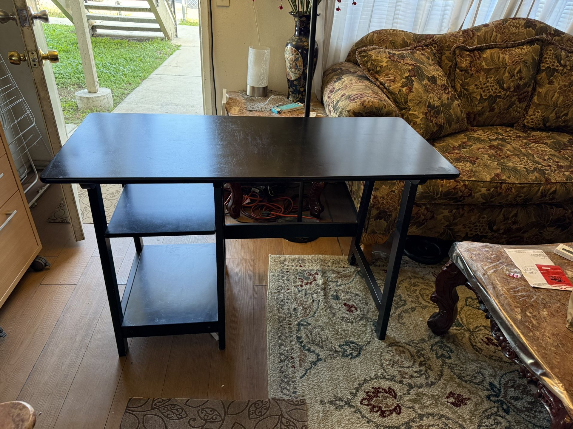 Dimensions are as follows: 47 inches wide, 20 inches length, 29 inches height Very nice modern computer desk, no longer needed as the spare bedroom has been repurposed