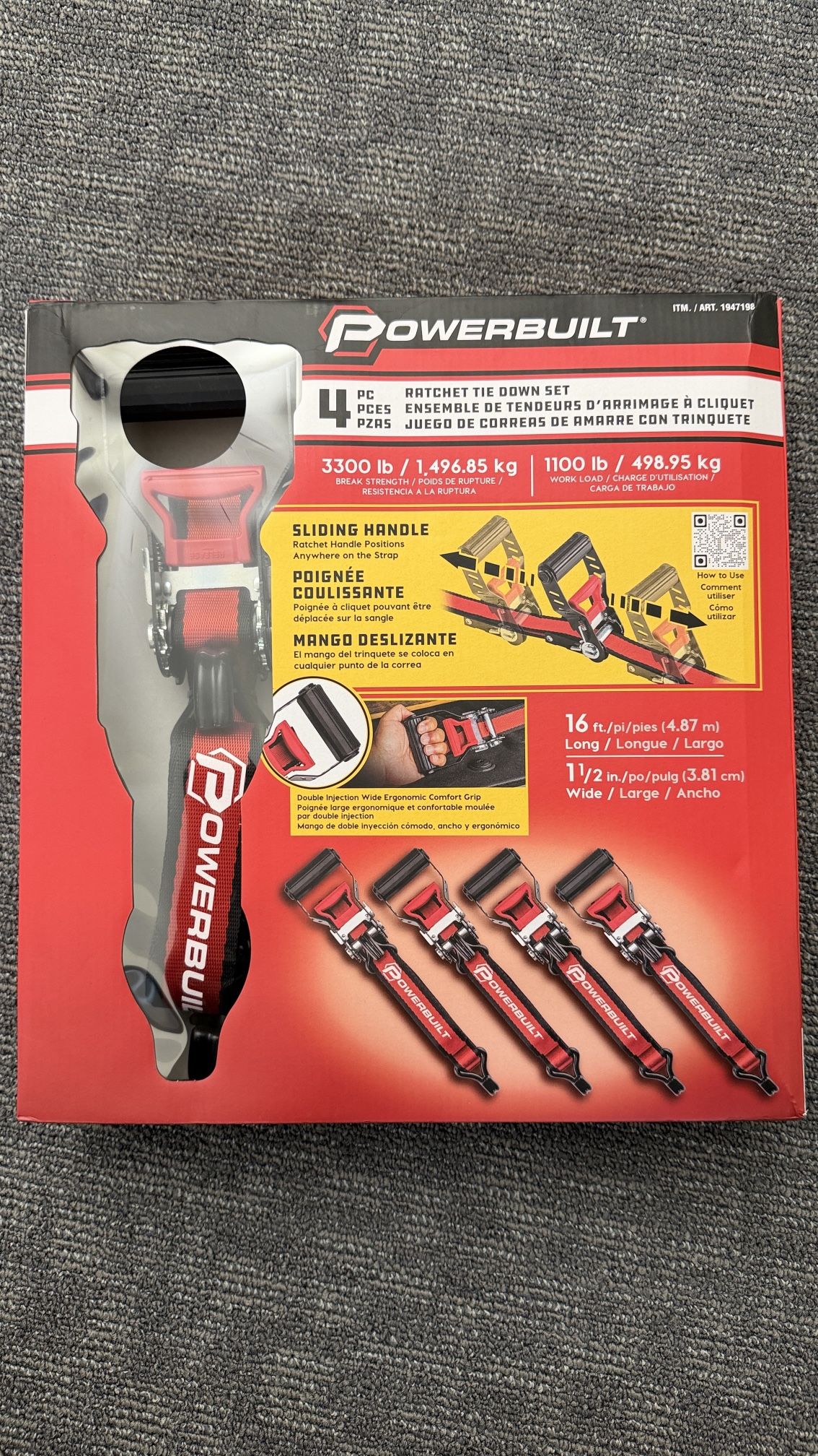 Powerbuilt Ratchet Tie Downs 1.5" x 16' 4-Piece Heavy Duty Set UVG