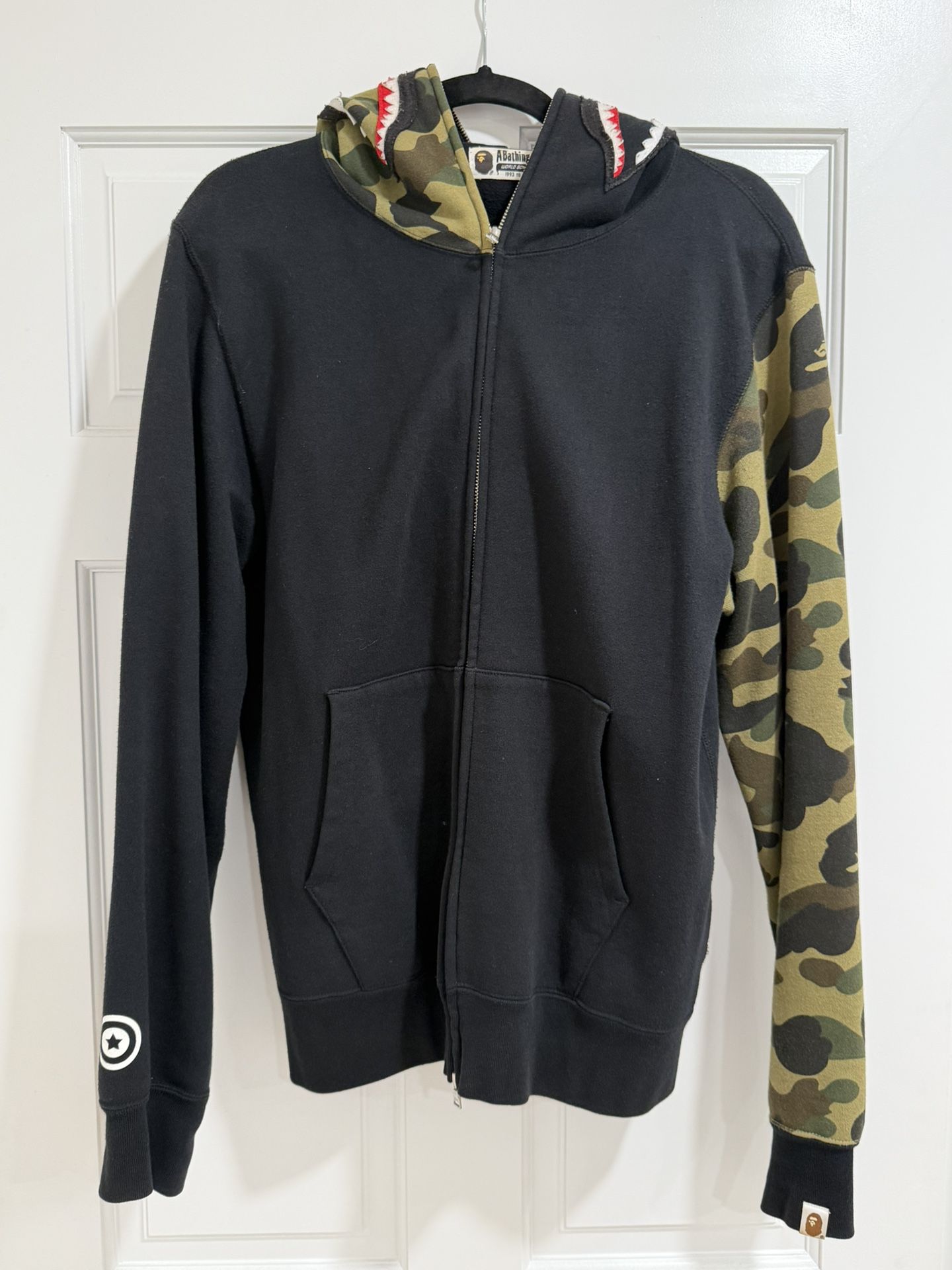 Bape Shark Zip up Hoodie Green Camo Sleeve