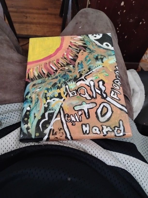 Original hand-painted abstract canvas titled “Light to Man.” Features expressive lettering, symbolic figures, and flowing energy lines with a bold sun element. Finished with a clear epoxy resin coating for a glossy, durable, high-end look that enhances color depth and protects the artwork. This is a one-of-a-kind original, inspired by spiritual themes, transformation, and human connection. Great statement piece for a home, studio, or collector of symbolic and modern art. • Original artwork (not a print) • Hand-painted & epoxy resin coated • High-gloss protective finish • One of a kind • Ready to hang or display Local pickup or shipping available.