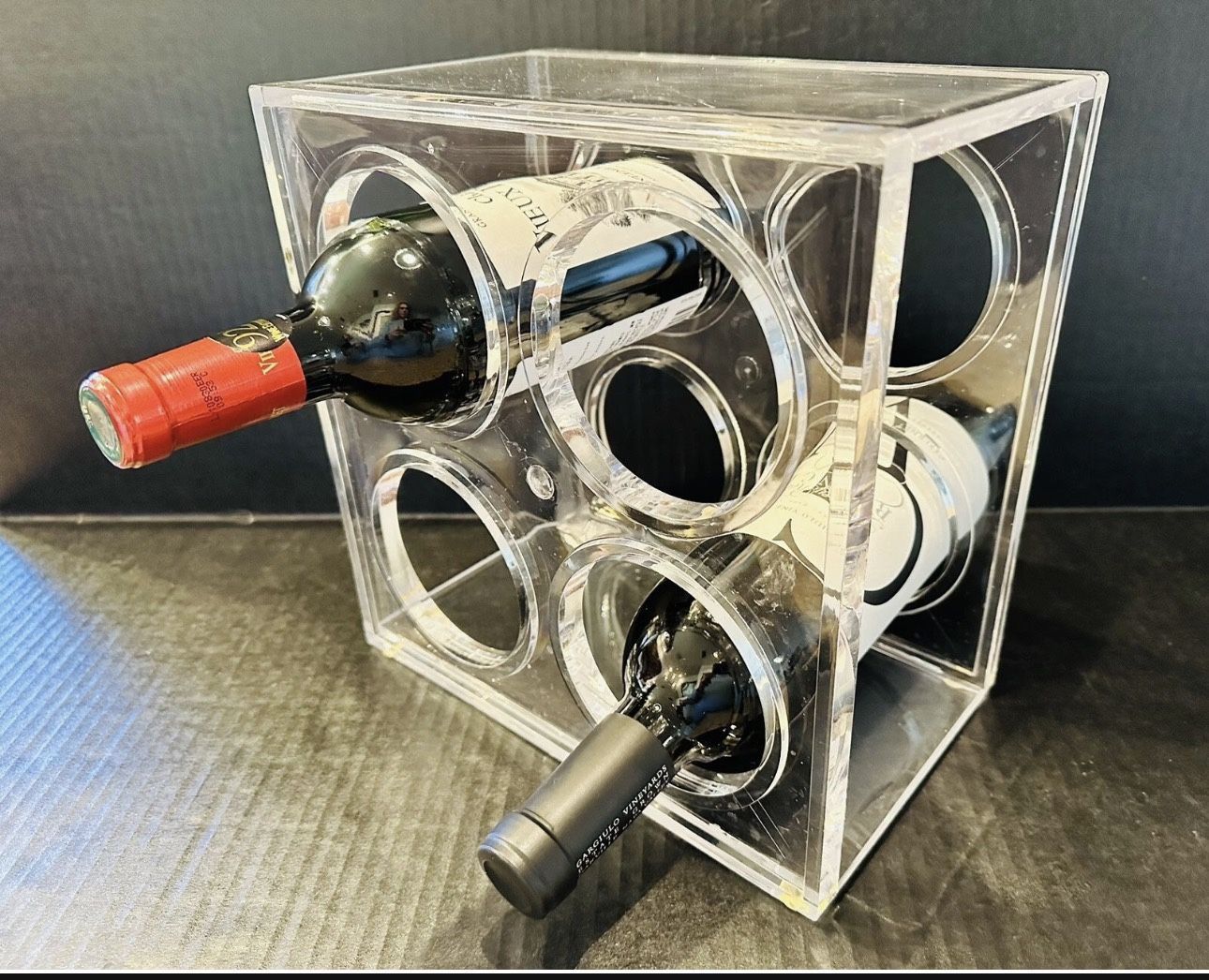 Lucite Acrylic Clear Wine Rack 4 Count Holder Storage 6x10x10"