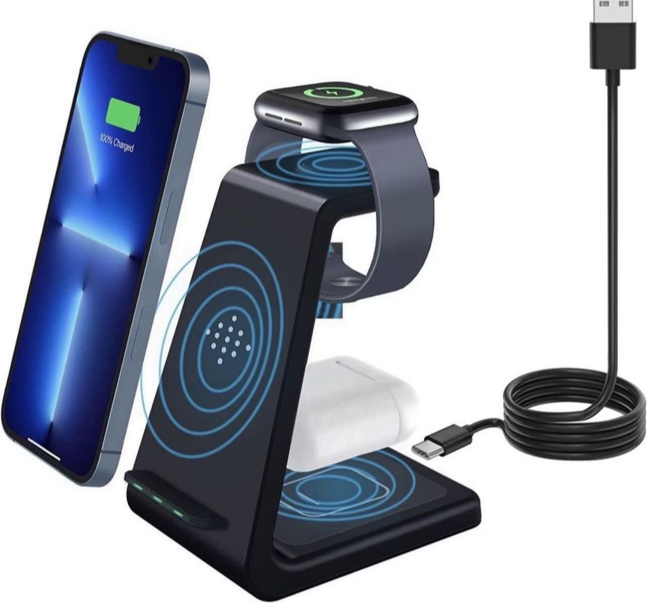 Wireless Charging Station, 3 in 1 Wireless Charger Fast Charging Stand Dock Compatible with Apple Watch Series 7 SE 6 5 4 3 2, AirPods 3 2 Pro, 14/14 Pro/14 Pro Max/14 Plus 13/13 Pro/13 Pro Max/12/12 Pro/11/XS/XR/X/8