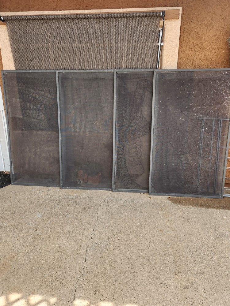 Got 4 window sun screen size are length 59 1/2. Inches X 35 1/4 inches. They are used.