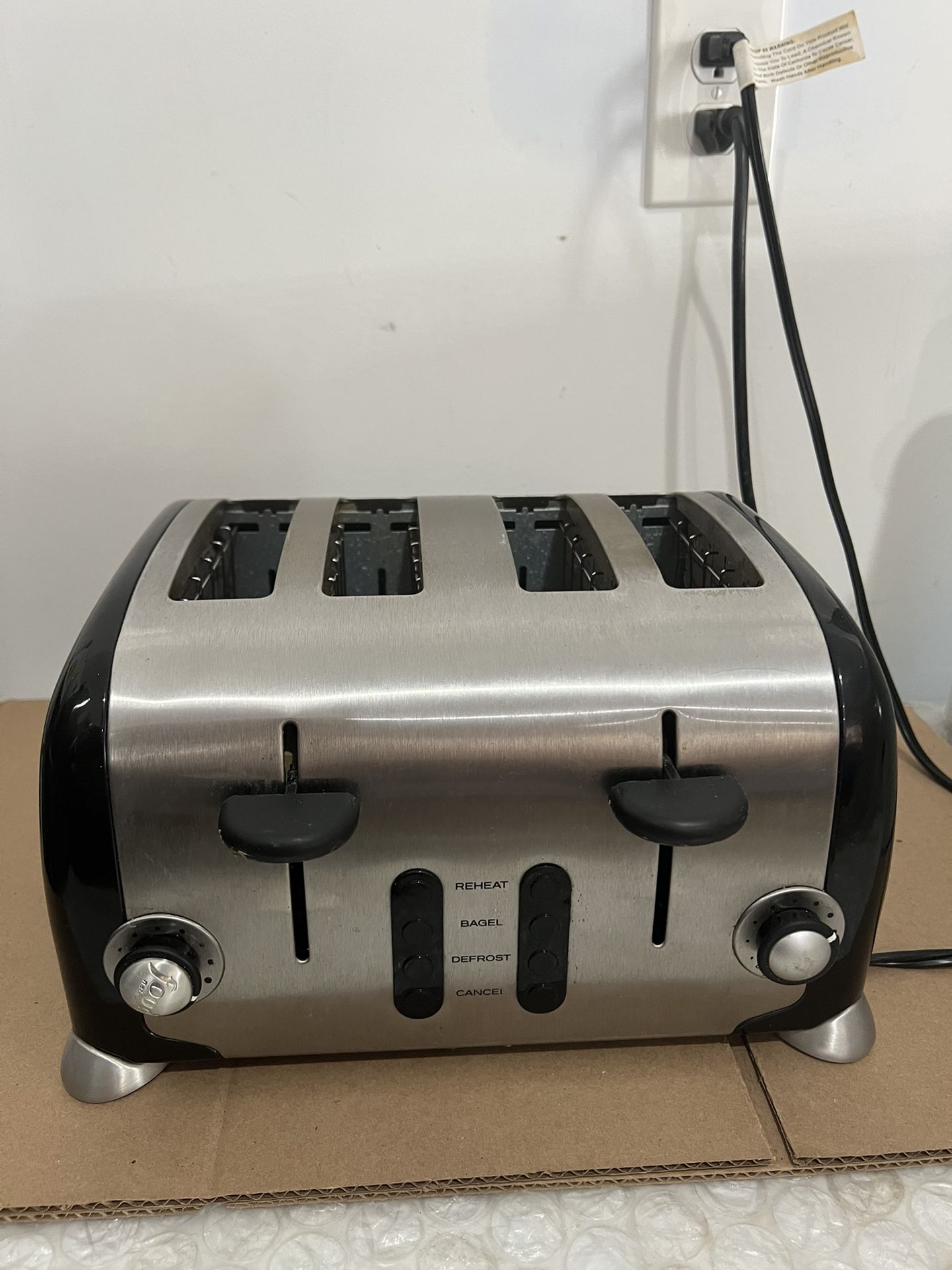 Used Stainless steel Food network 4-slice toaster. Works needs a cleaning. Please look at the pictures. Smoke free pet free home