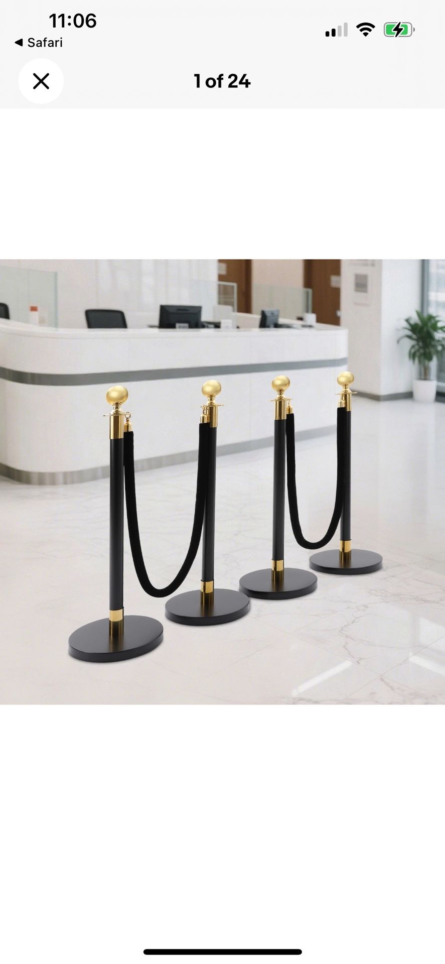 4 PCS Black and Gold Stanchion Posts Crowd Control Barriers Stanchion Post wit
