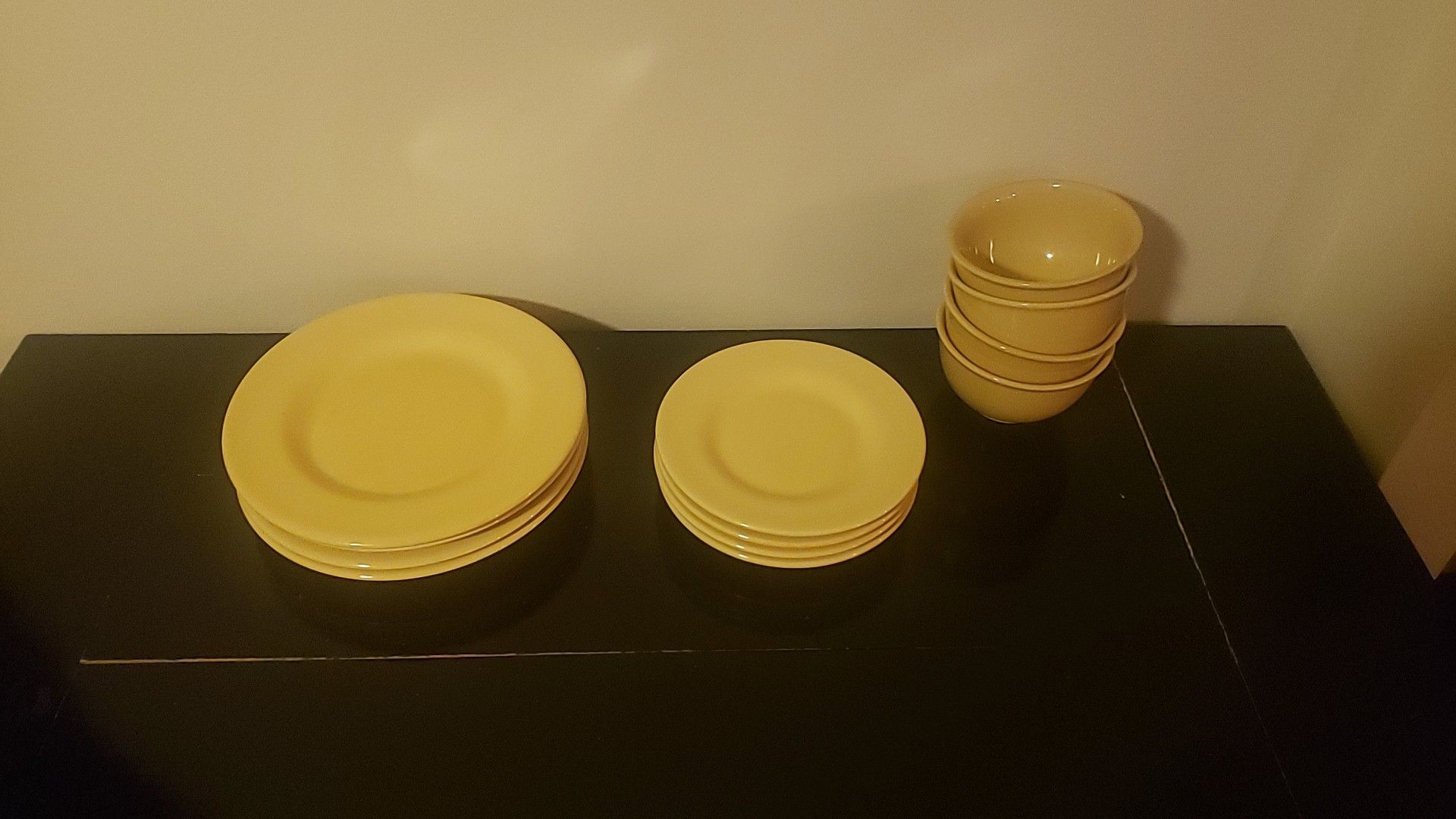 Set of 4 large plates, 4 small plates and 4 deep bowls