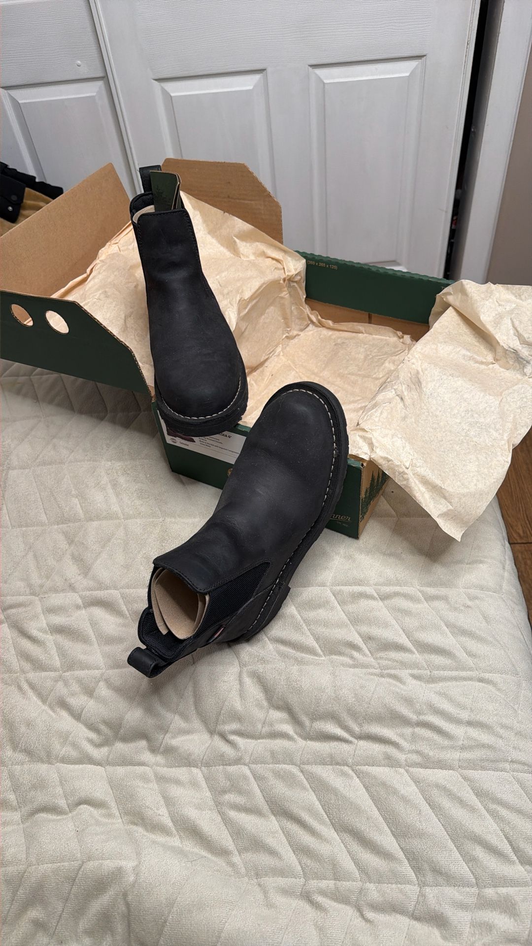 I only used them for one day, so they are basically new. New offers are welcome. Danner 15483 Men's Bull Run Chelsea 6" Black Electrical Hazard Work Boots Shoes A Rugged Design with Lace-Free Ease You can count on the Bull Run Chelsea for durability and comfort in the wood shop or around town. It has the same rugged design as the original Bull Run, updated with slip-on construction for easy on and off. A full-grain leather upper is soft yet durable. The oil-and-slip-resistant outsole with a 90-degree heel keeps you comfortable for long days climbing ladders or standing on wood, tile or concrete. Full-Grain, Oiled Leather Upper After incorporating oil into the tanning process, we take the oiled, full-grain leather and put it through a series of rigorous testing to ensure its strength and durability. This form of leather is more resistant to water and other liquid damage and requires less maintenance over time. Unlined Leather Upper Lighter weight with cool comfort in warmer temperatures, our unlined leather boots will mold perfectly to your foot. Electrical Hazard (EH) Protection Electrical hazard (EH) footwear is manufactured with non-conductive electrical shock resistant soles and heels. Stitchdown Construction Handcrafted to provide a wider platform, our legendary stitchdown construction offers increased stability underfoot. Many of our stitchdown boots can be recrafted. How It Fits Portland made 503 last has a casual fit without compromising Danner's comfortable lace-to-toe construction. Fits true to size. Recraftable Extend the life of your boot with our recrafting services. This boot is eligible for a number of paid services, including part replacement, leather care and restitching. See our Recrafting page. 365-Day Warranty If you suspect your purchase isn’t up to our unrelenting standards, or is defective in any way, we want to make things right. We offer a 365-day warranty across our entire footwear line. Specifications Style 15483 Weight 48 oz per pair Closure Slip-On Height 6" Insulation Non-Insulated Color Black Footbed OrthoLite Shank Fiberglass Protection Electrical Hazard Certified Safety ASTM F2892-18 EH Last Type 503 Lining Non-Waterproof Liner Mesh Outsole Danner Heeled Bull Run Recraftable Yes Country of Origin United States Manufacturing Made in USA with Imported Components Toe Protection Plain Toe
