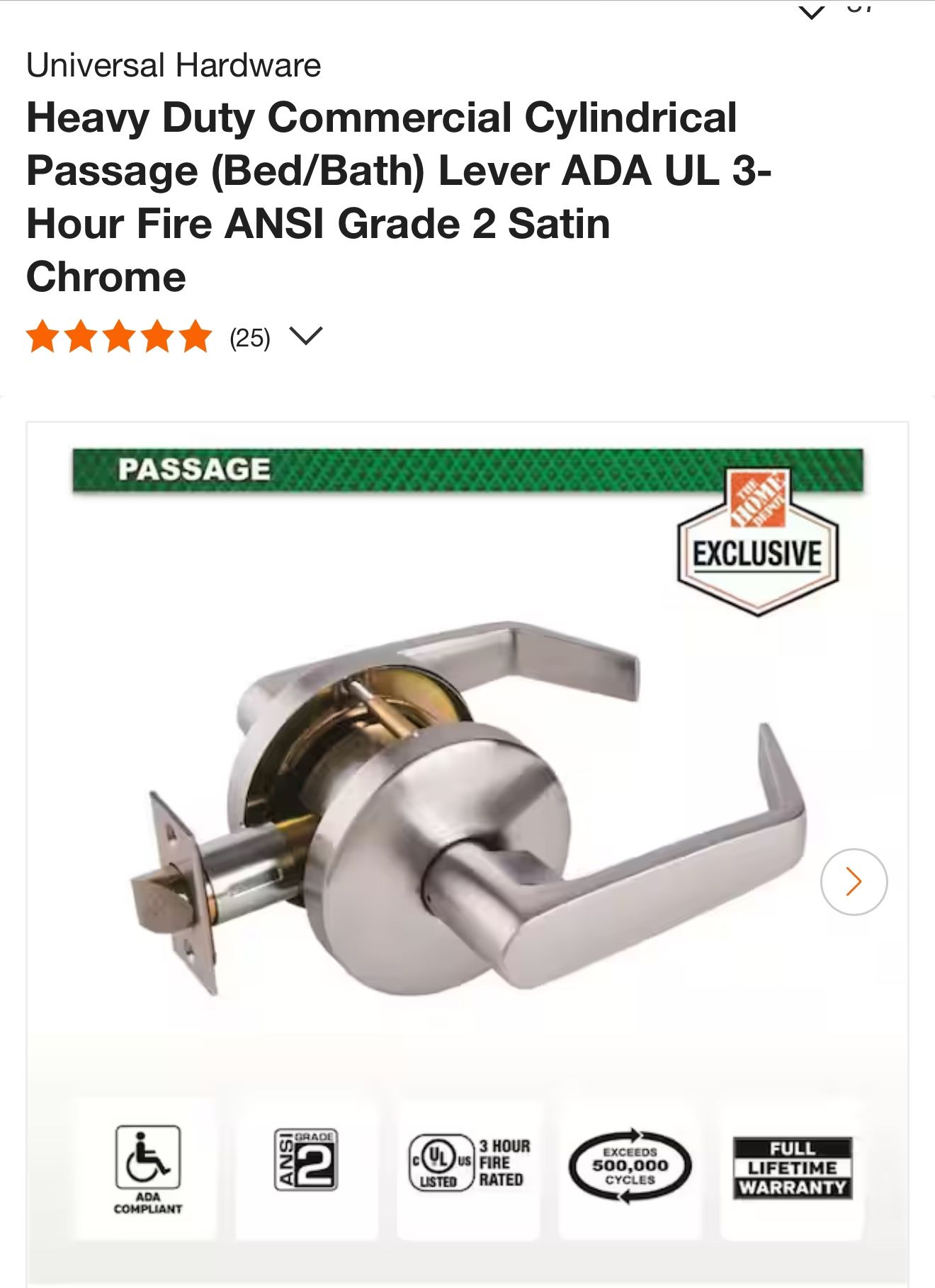 4 Satin Chrome, Heavy Duty Commercial Cylindrical Passage (Bed/Bath)
