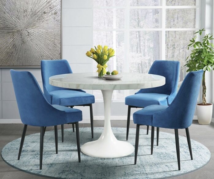 ****MASSIVE SALE**** Brand New 5 Piece Dining Set Only $1099 Was $1499 Set Includes: Table & 4 Chairs White Marble Table Top Black or White Base Blue or Beige Fabric Chairs Black Legs Perfect for your modern home Hablamos Español Our Locations Are Open & We Still Offer Delivery or Pick Up Order From The Comfort & Safety of Your Home Or Come Check Out Our Showrooms! Message Us To Order Today! Floor Model’s Up To 50% Off!!!! INCREASE YOUR PURCHASING POWER!!! Easy Approval Credit Check Program w/ 6, 12, 18 & 24 Months Financing No Credit Needed Also Available. SAME AS CASH IF PAID OFF IN 90 DAYS!!! Come See Us @ One Of Our 2 Locations: Zoe’S Furniture in Richardson, TX. or Dallas, TX. ONLY!!! EL CS