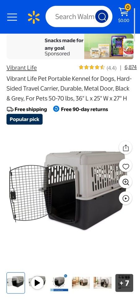 Vibrant Life Pet Portable Kennel for Dogs, Hard-Sided Travel Carrier, Durable, Metal Door, Black & Grey, For Pets 50-70 lbs, 36" L x 25" W x 27" H