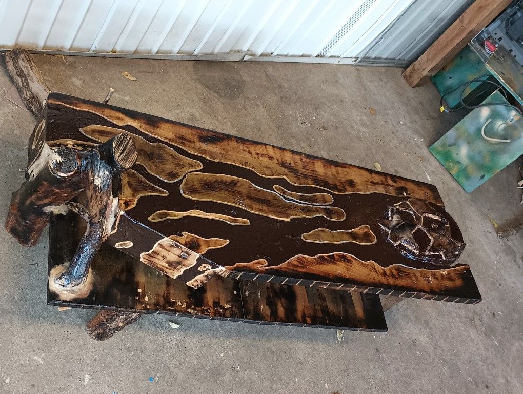 Freestyle custom coffee table , rustic waterfall design , one of a kind
