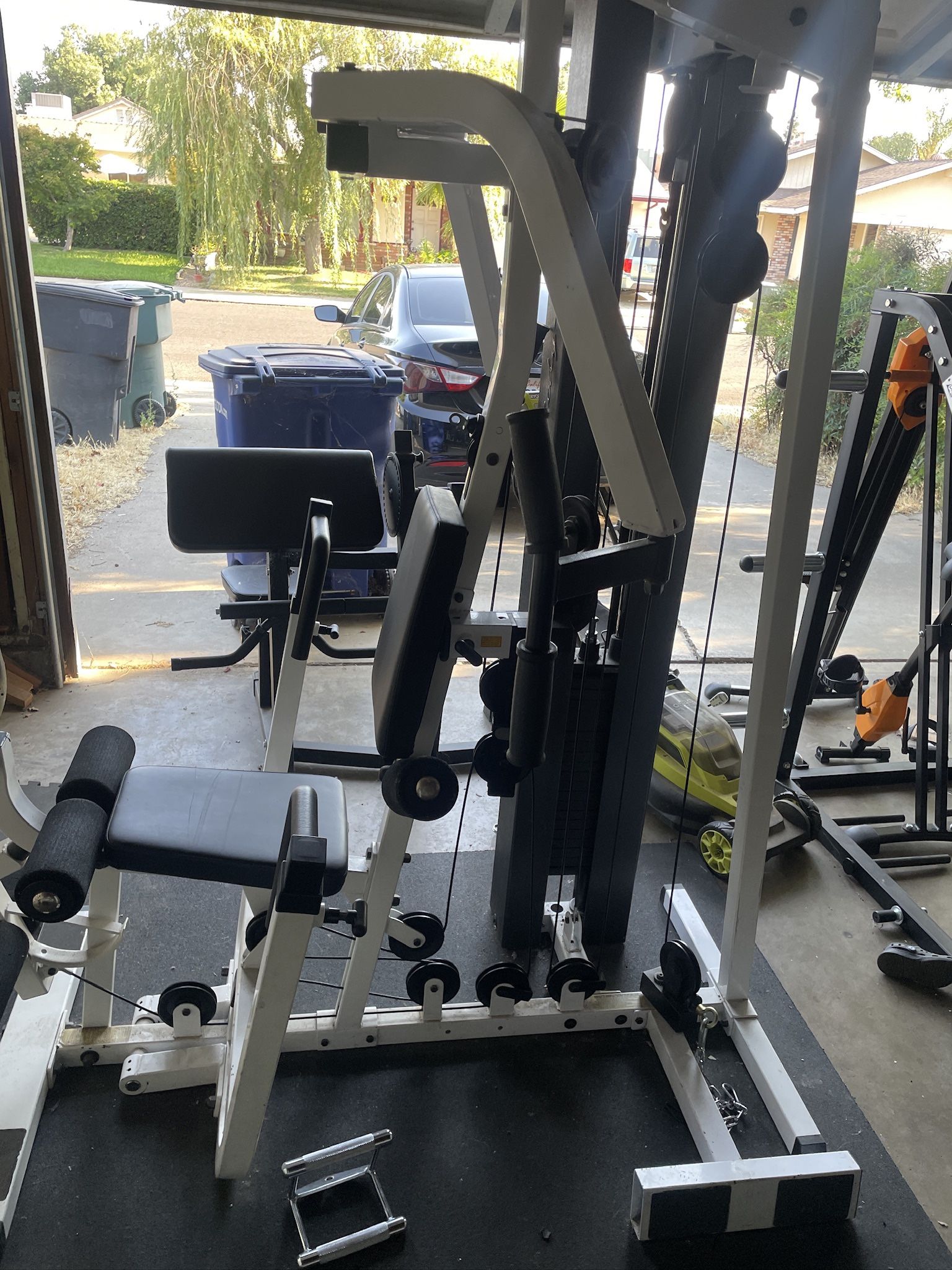 Multifunctional trainer with attachments Weight stack 220lbs in great condition Close grip handle Wide grip pull down bar